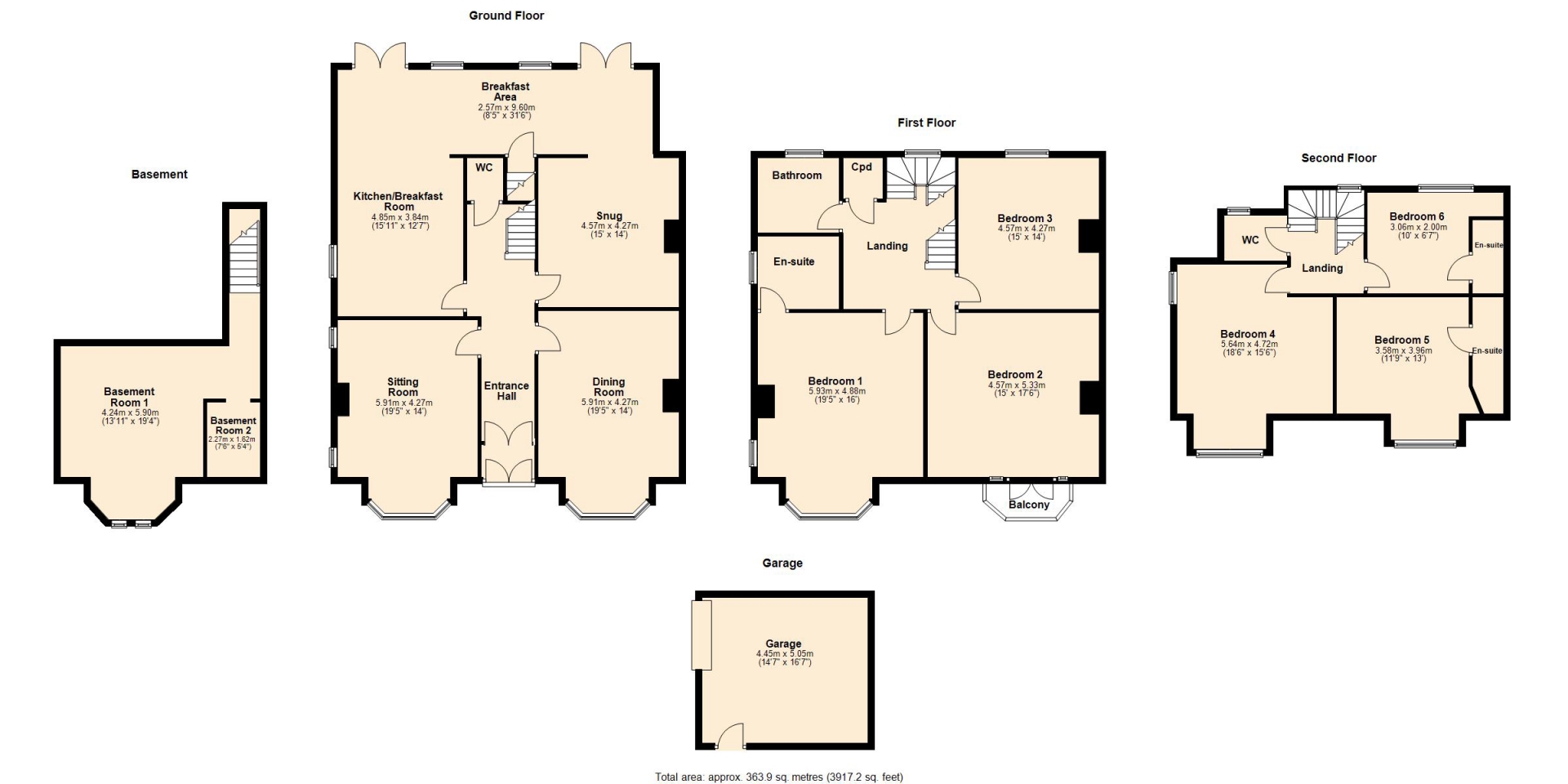 The second floor hosts a further three bedrooms, two of which have their own en-suite shower rooms.