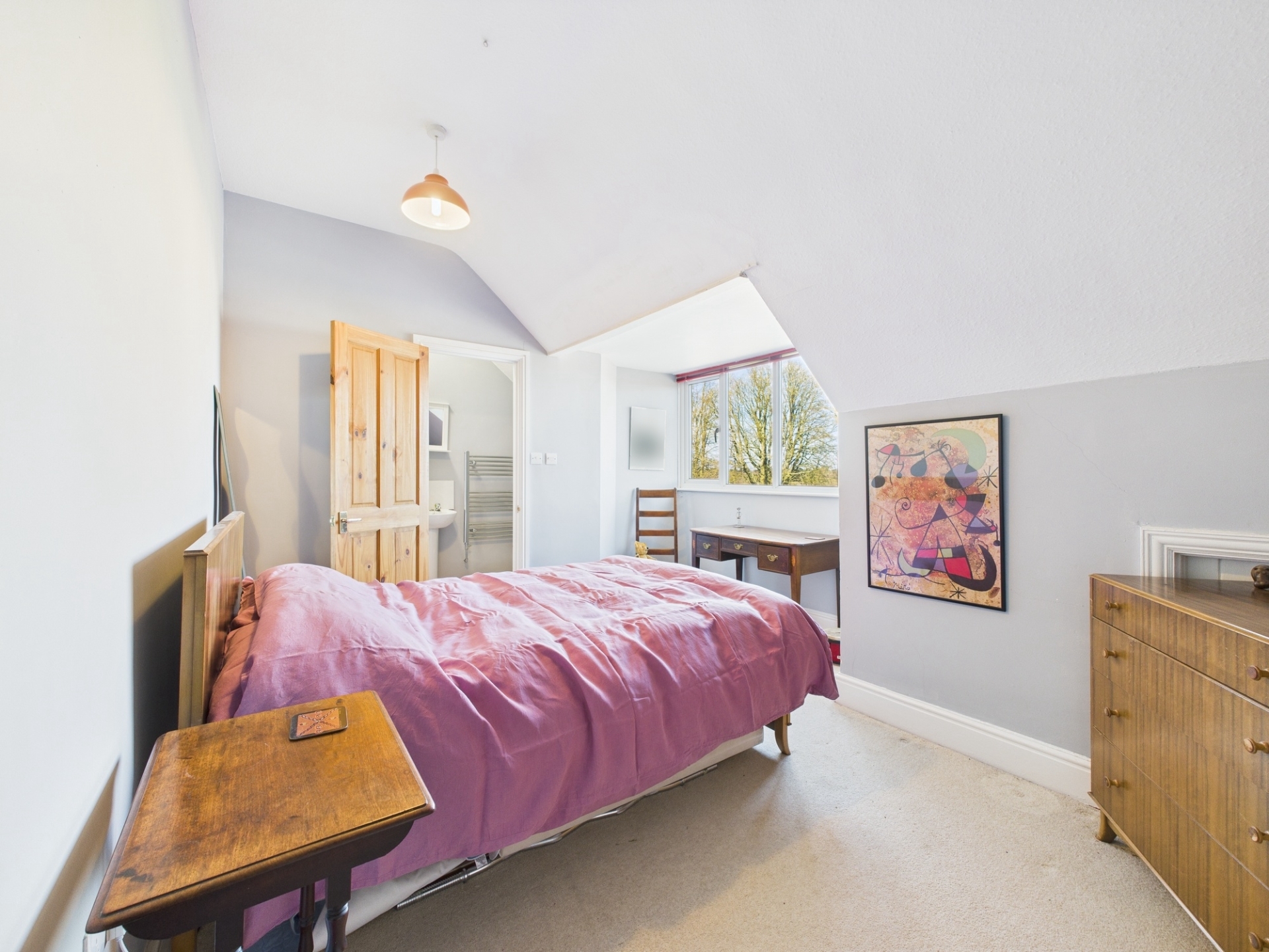 Climbing the stairs you are greeted by a large landing which leads to the fantastic principal bedroom with bay window offering fabulous views of Abington Park. There is an en-suite shower room and fitted wardrobes. The second bedroom is currently used as a study and understandably so with its balcony and views over the park. The third bedroom and family bathroom are also on this floor.