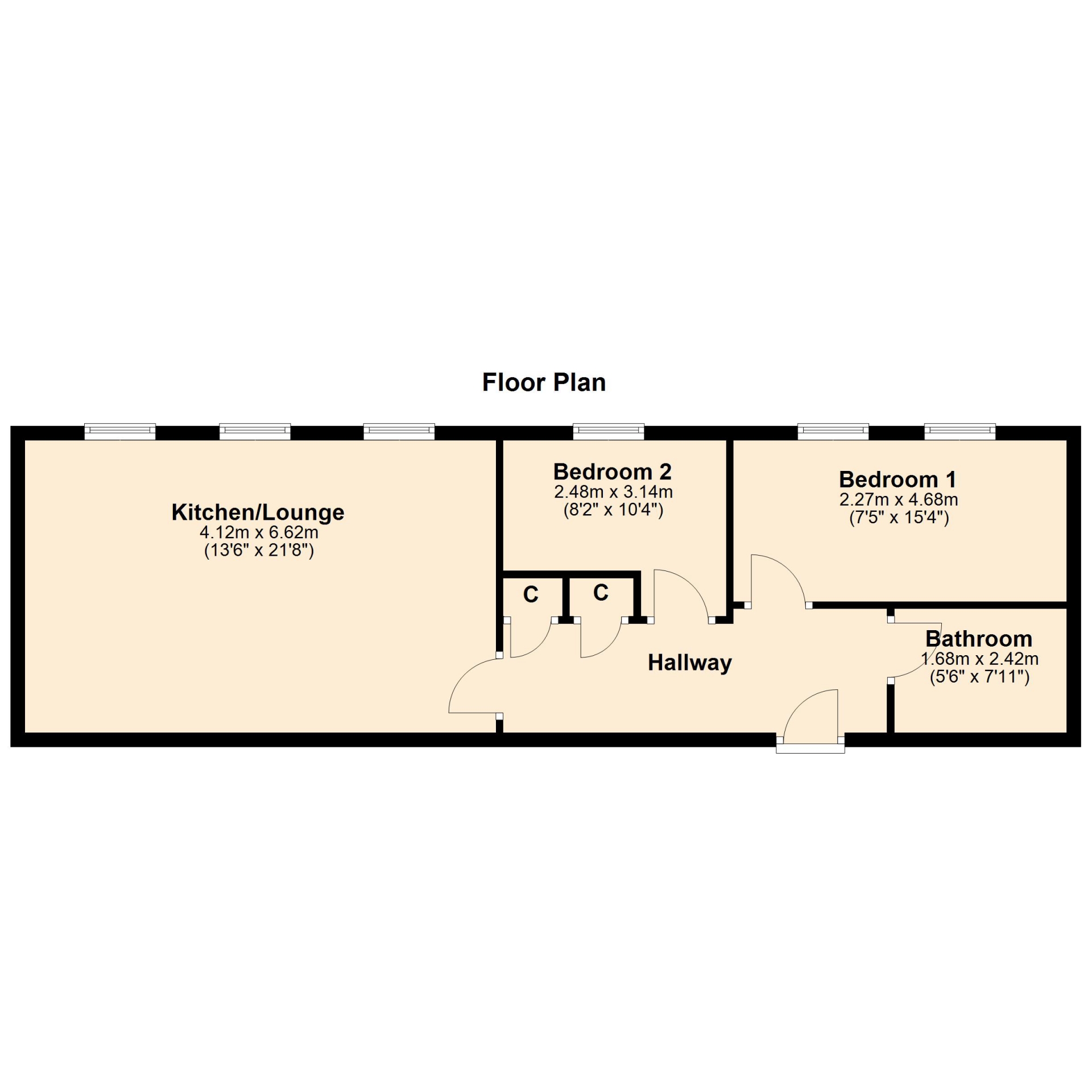 KITCHEN/LOUNGE 4.12m x 6.62m (13'6" x 21'9")