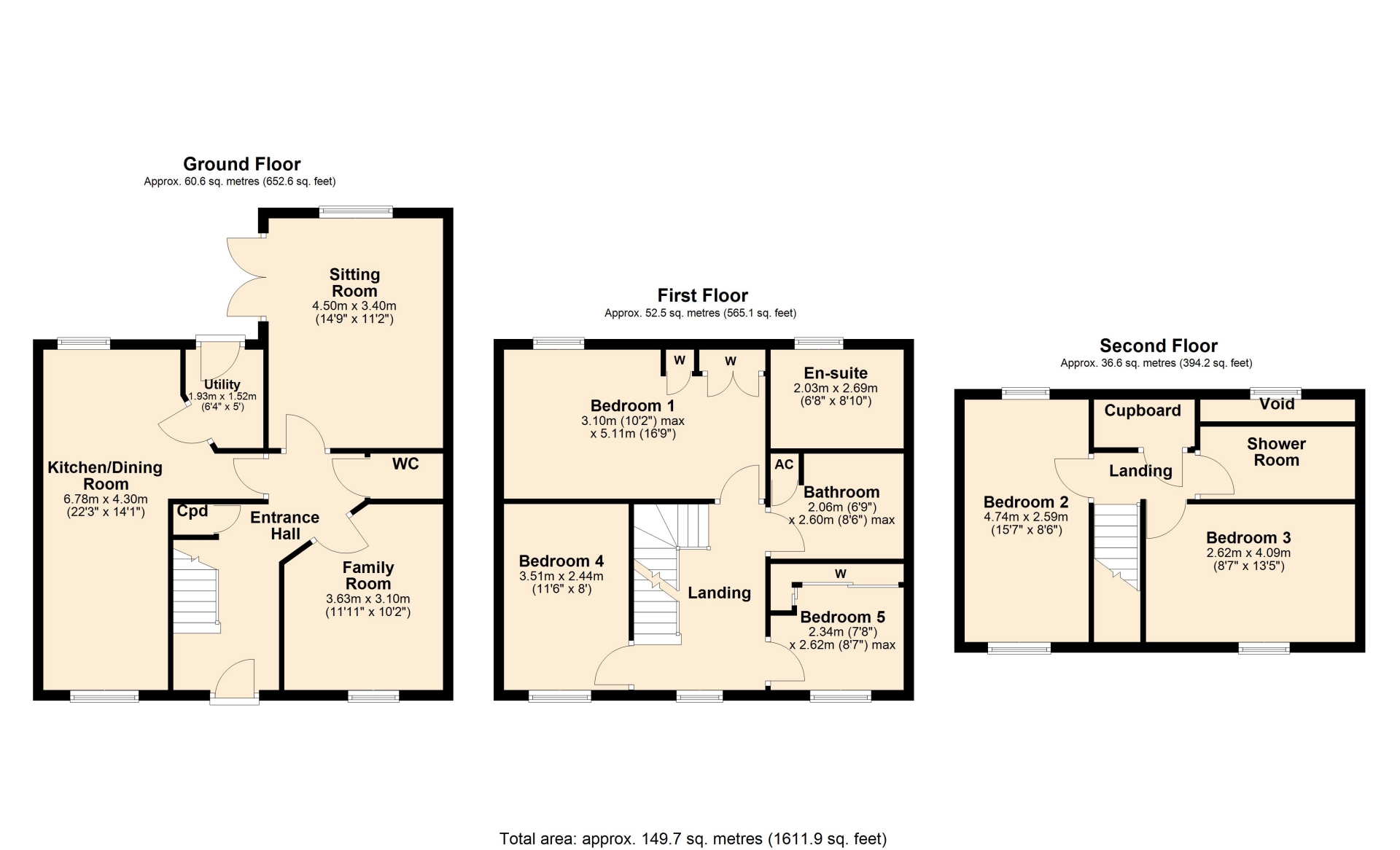 • Five Bedrooms
