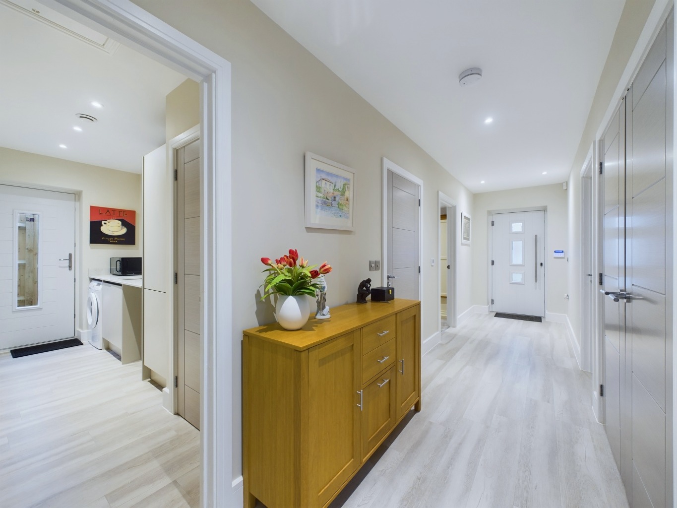 The kitchen area is fitted with a range of units with quartz work tops and integrated appliances along with a central island incorporating a breakfast bar. There is a utility room and cloakroom leading off the hallway. Both bedrooms one and two have en-suite shower rooms and there is a further bedroom.