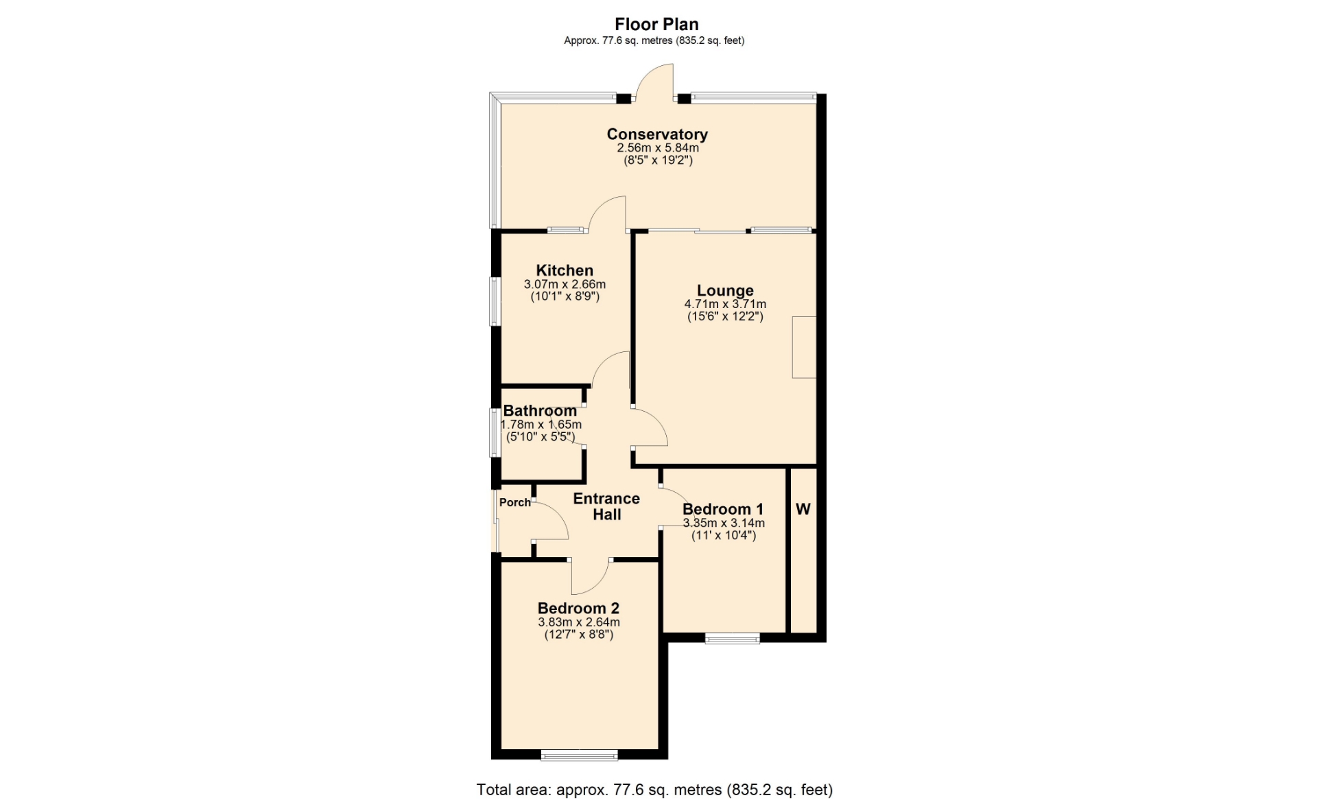BEDROOM TWO 3.84m x 2.64m (12'7" x 8'8")