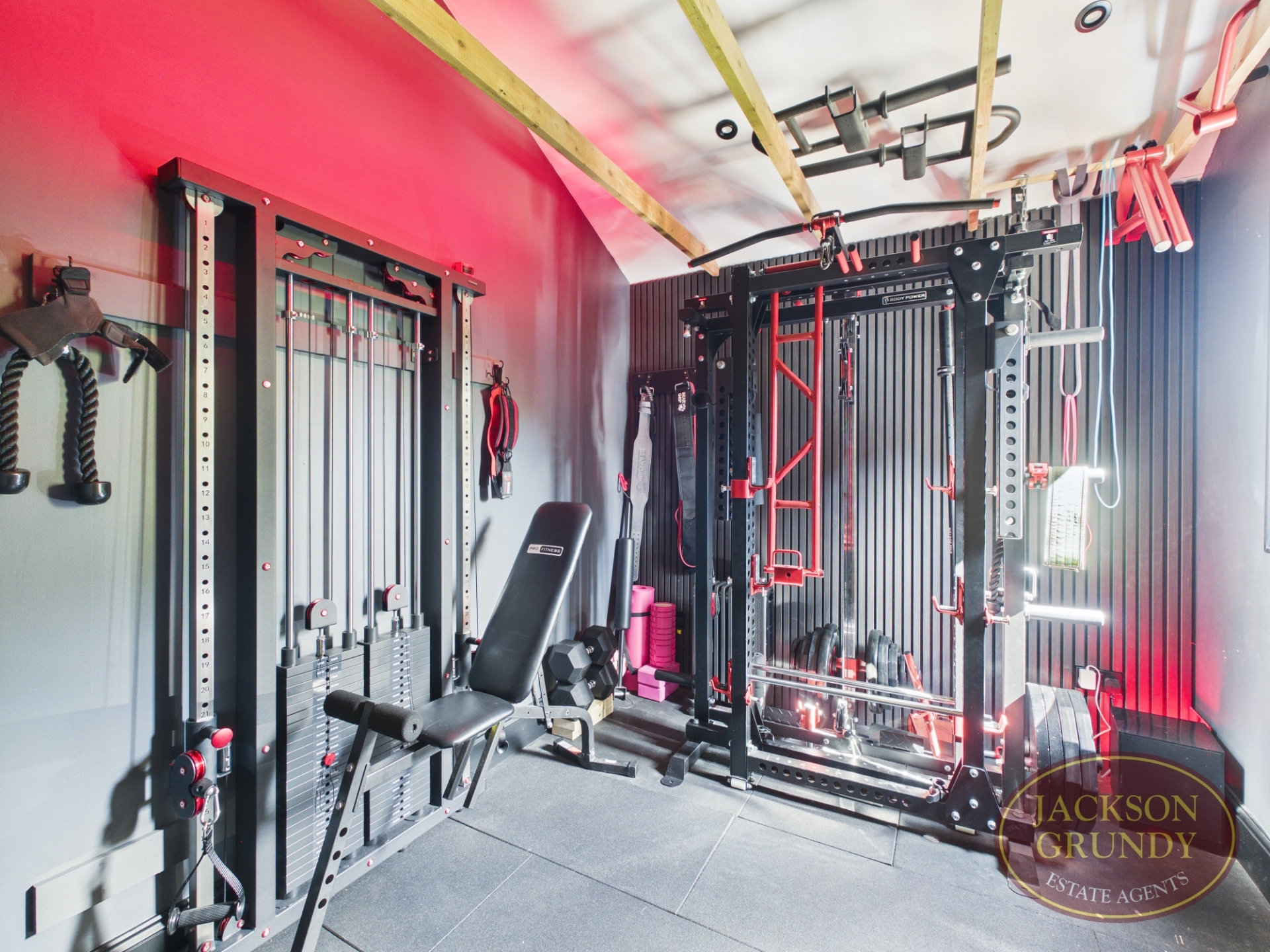 It has a hall, cloakroom, lounge with log burner and double doors to the garden, kitchen/dining room with island and bi-fold doors to the garden. There are two built in ovens, induction hob, extractor and wine cooler plus integrated fridge / freezer and dishwasher. The utility room leads off the kitchen and leads to the gym which would also make a great office.