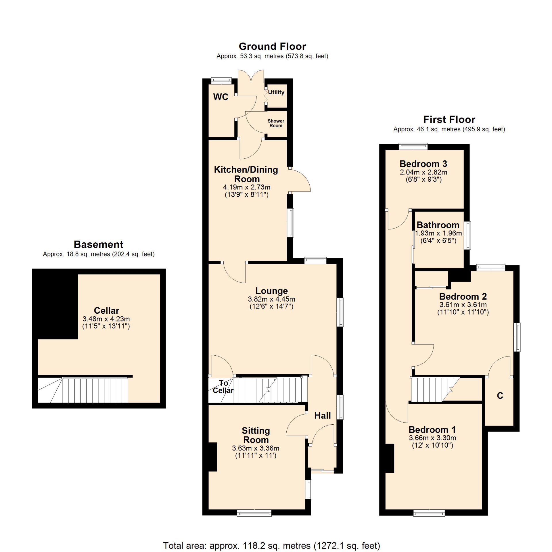CELLAR 3.48m x 4.23m (11'5" x 13'11")