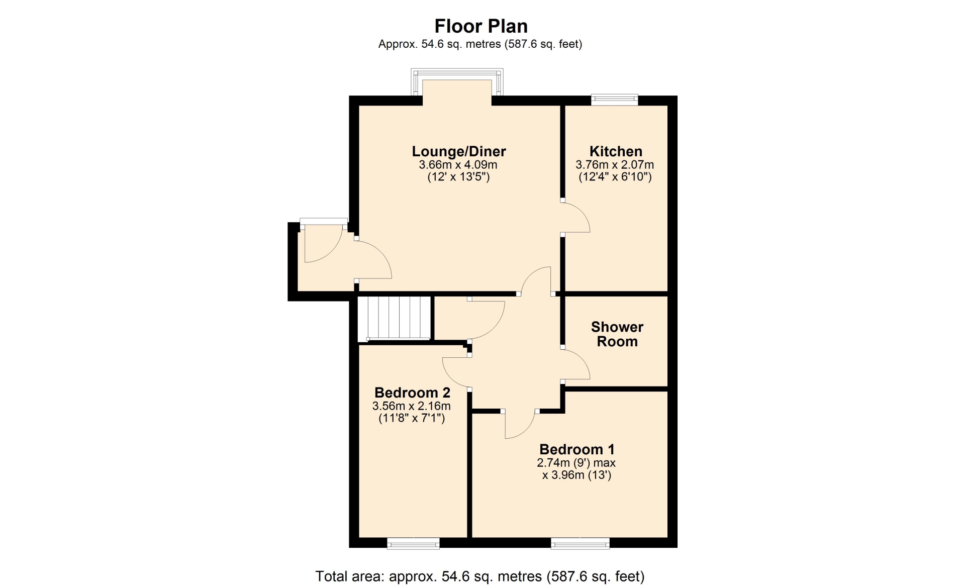 LOUNGE/DINER 3.66m x 4.09m (12' x 13'5")