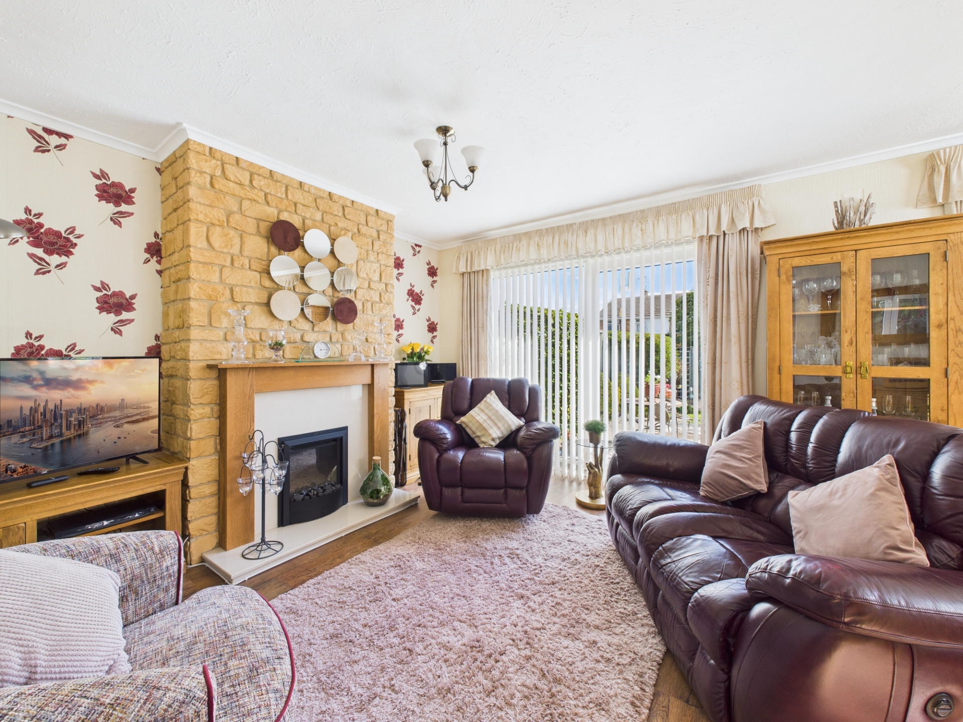Double glazed patio doors leading to garden. Double glazed window to side elevation. Two radiators. Chimney breast. Feature fireplace. Wood laminate flooring.