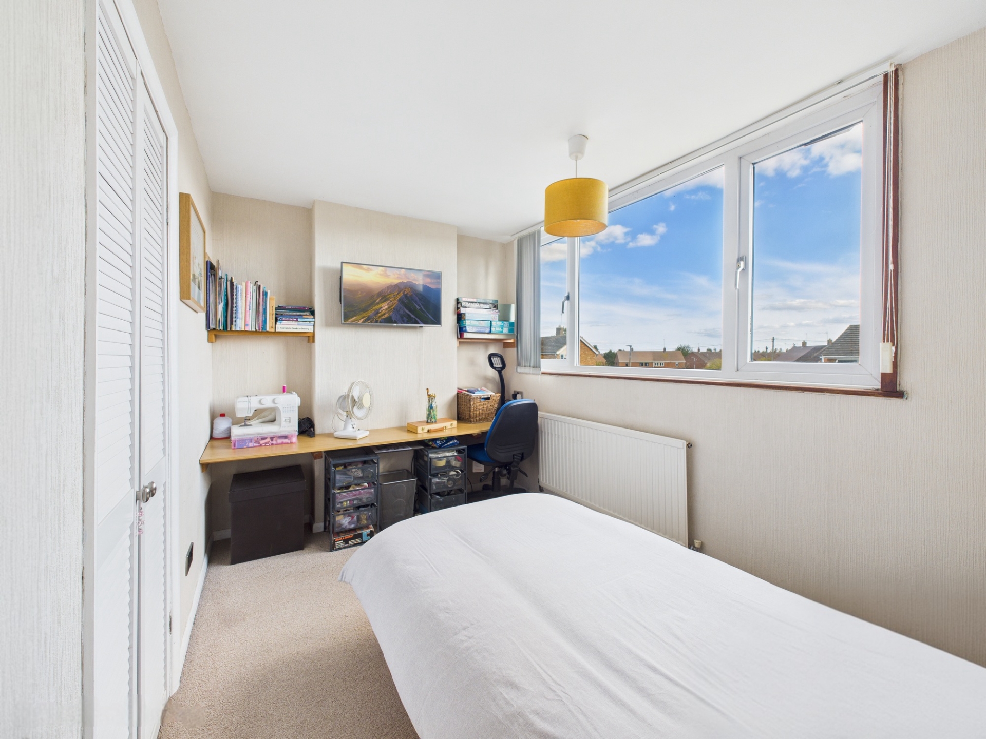 Double glazed dormer window to front elevation. Radiator. Built in wardrobes, cupboard and drawers.