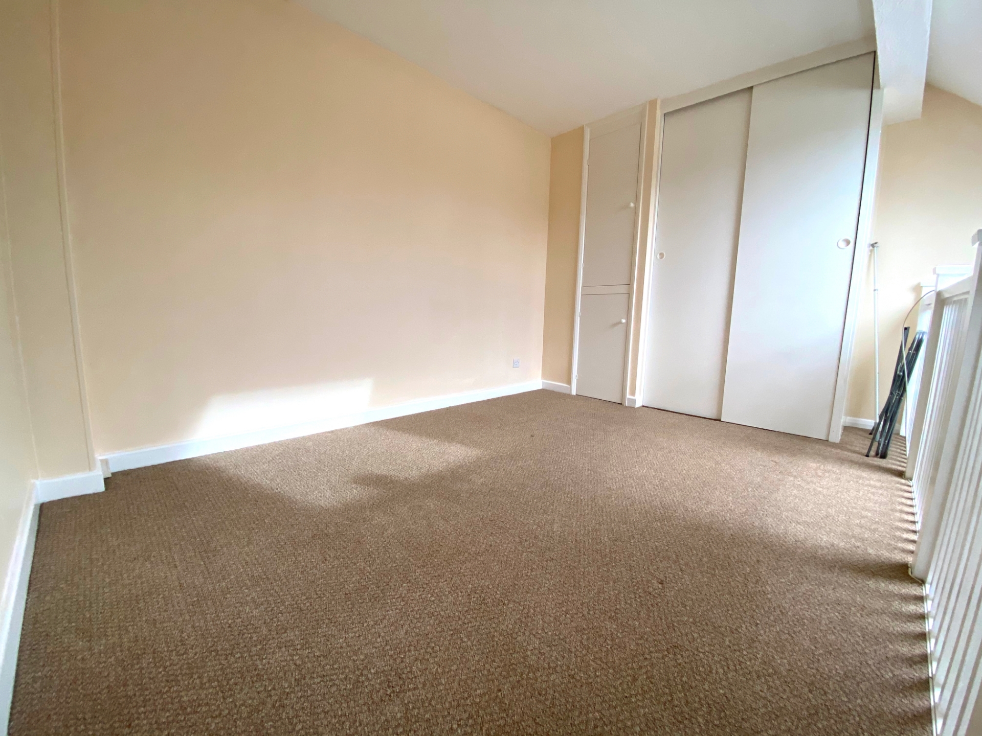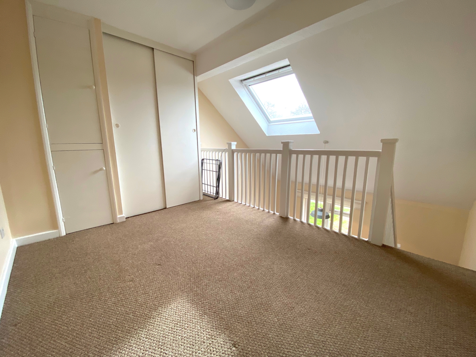 The accommodation comprises entrance hall with storage cupboard, bathroom, open plan kitchen lounge area and stairs leading up to the mezzanine bedroom space with fitted wardrobes.