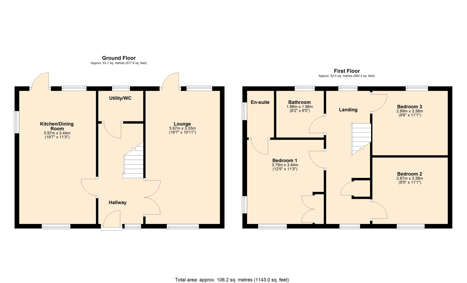 Composite entrance door. uPVC double glazed obscure window to front elevation. LVT flooring. Radiator. Access to lounge, kitchen/diner, understairs storage and WC/utility.