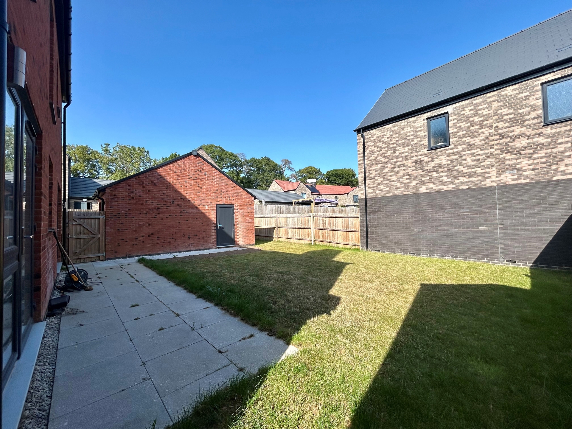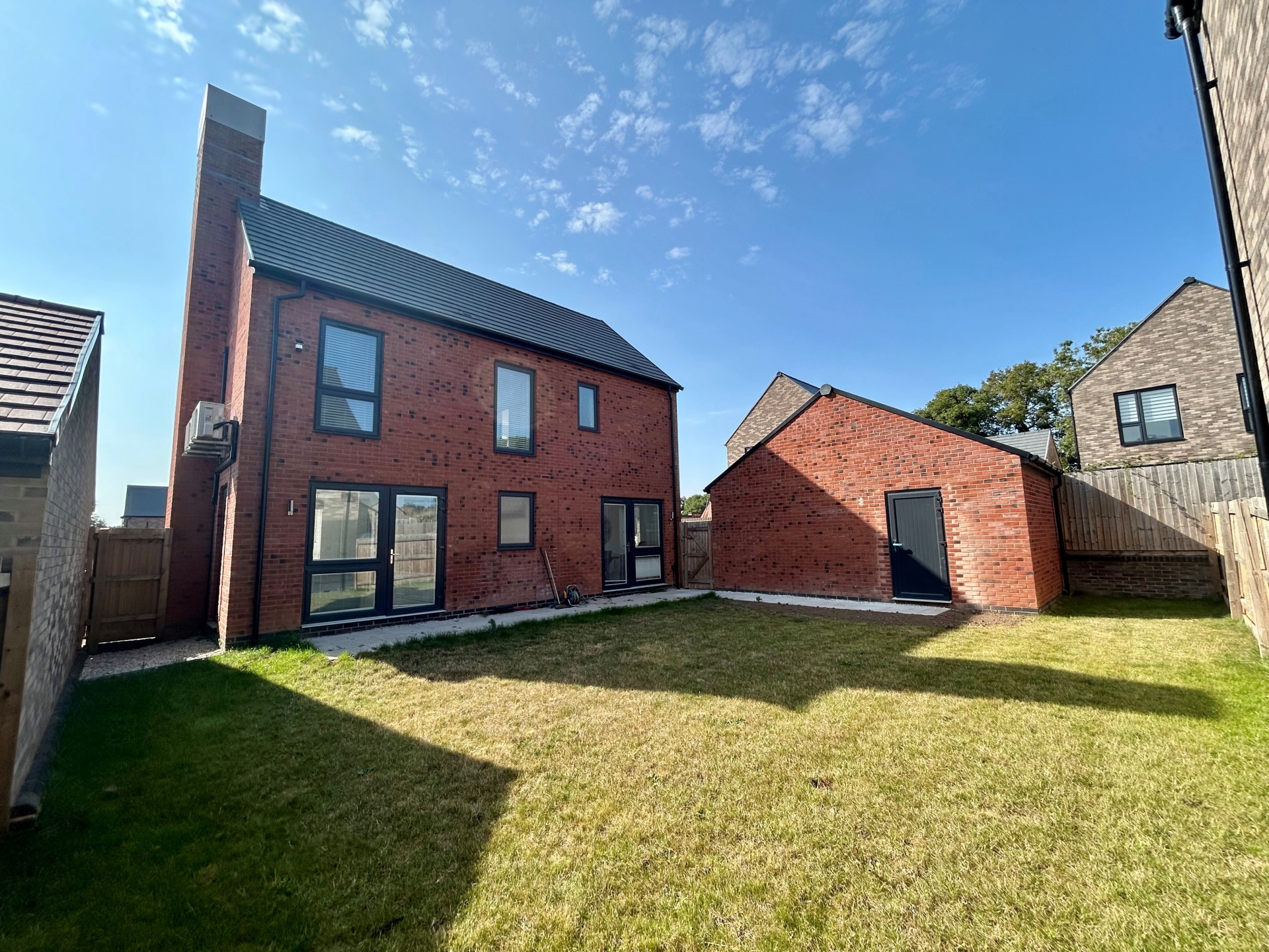 Lawn frontage. Paved pathway to front door. Tandem driveway and direct access to garage. Side access to garden. EV charging point.