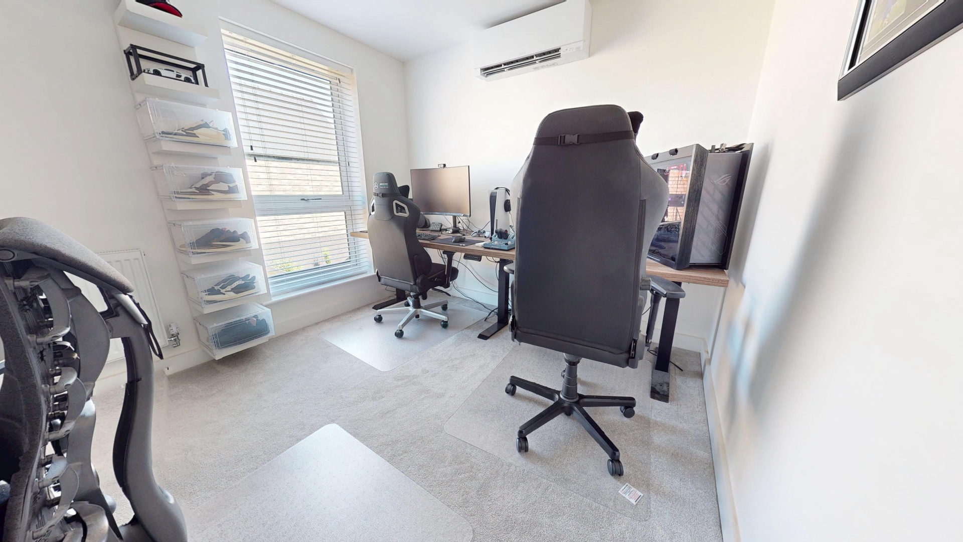 uPVC double glazed window to rear elevation. Radiator. Wall mounted AC/heating unit. Electric blinds