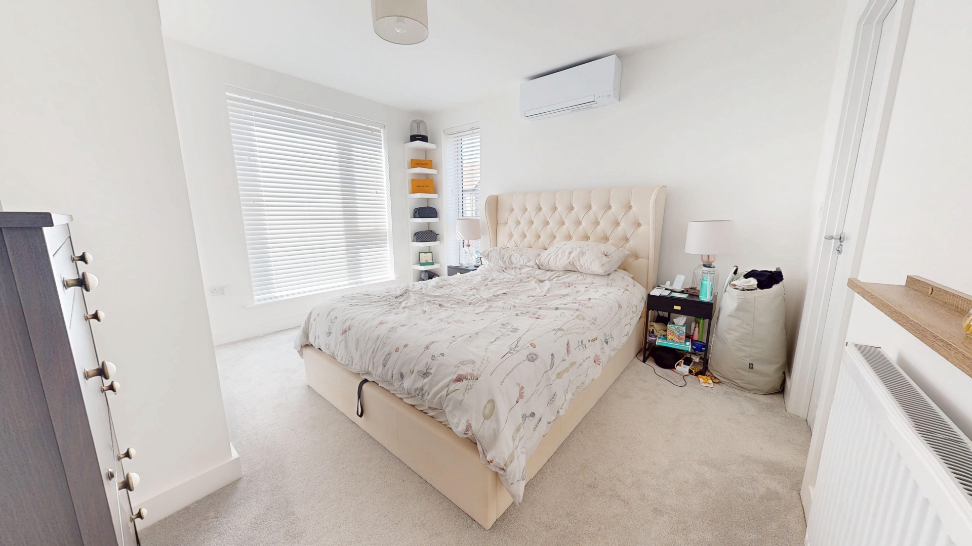 uPVC double glazed window to front and side elevations. Built in wardrobe. Radiator. Electric blinds. Wall mounted AC/heater unit. Access to en-suite.