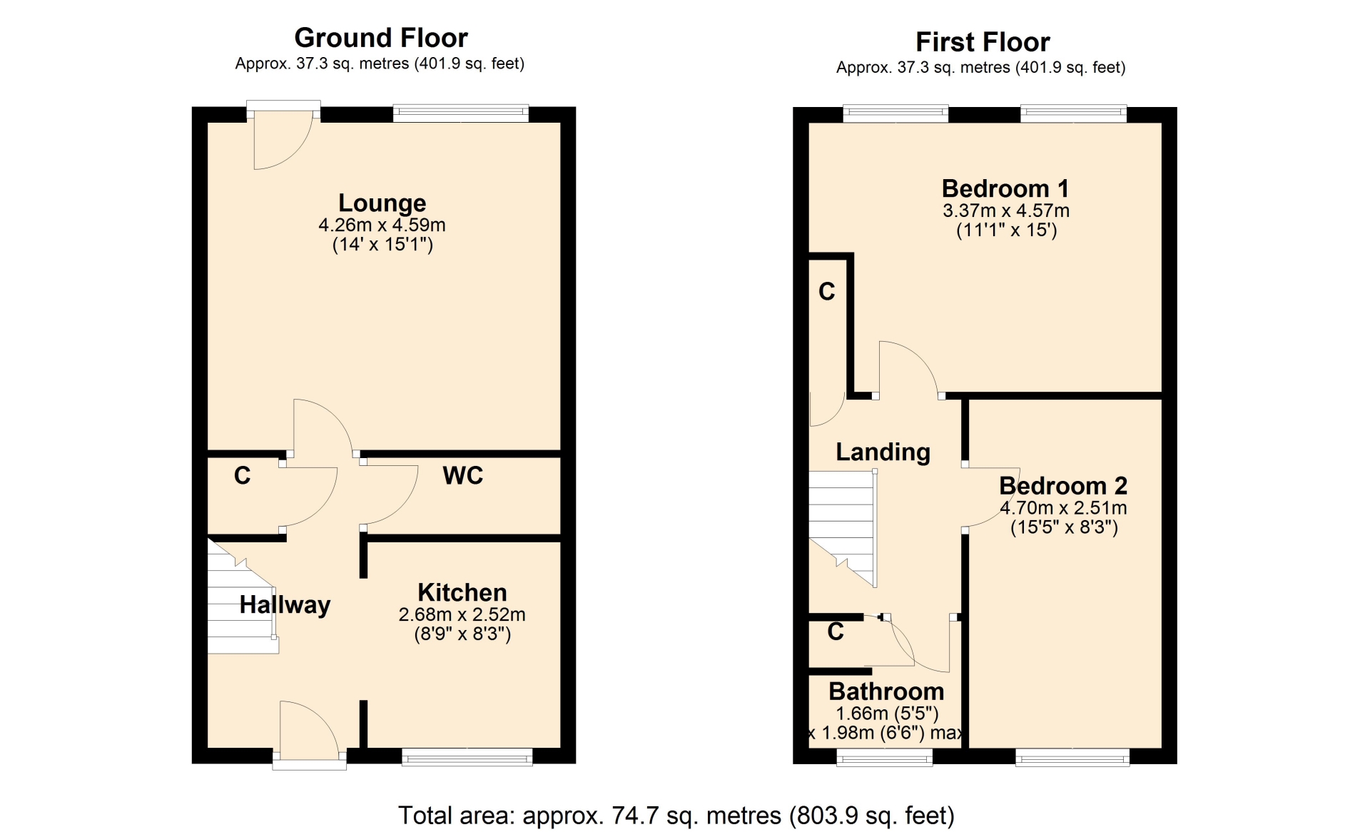 BEDROOM TWO 4.70m x 2.51m (15'5" x 8'3")
