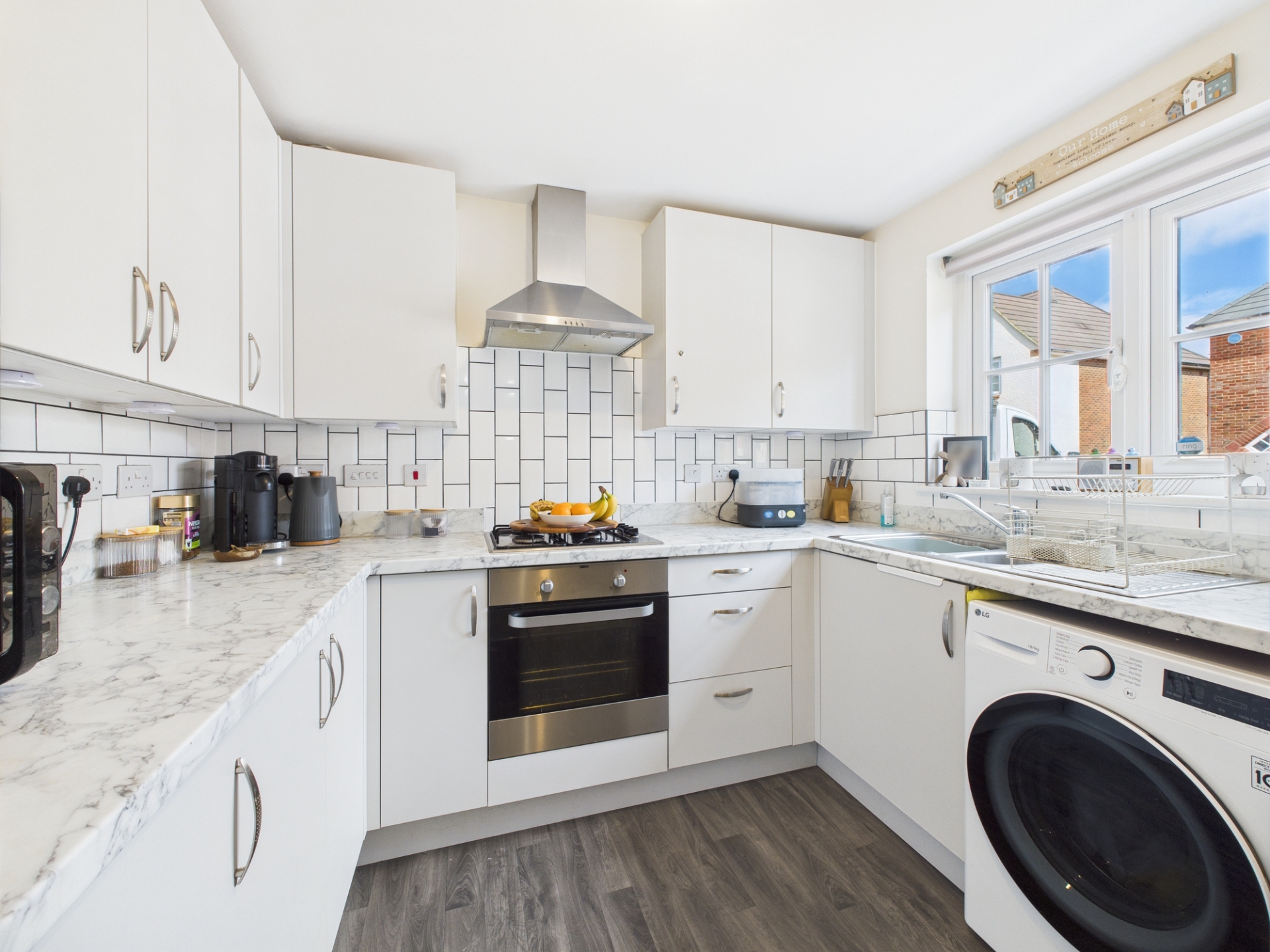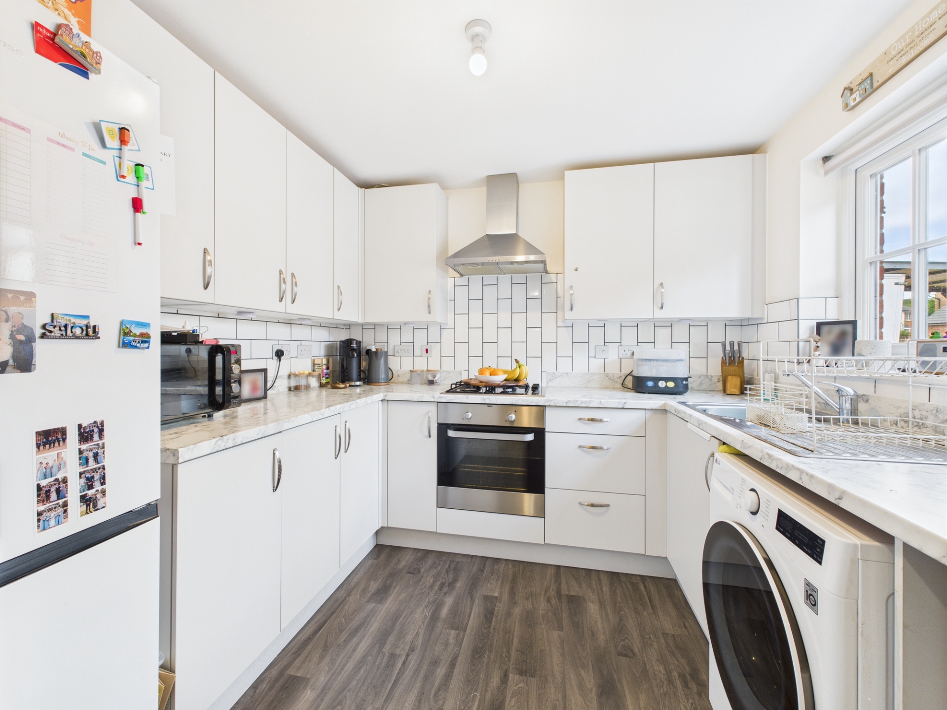 Double glazed window to front elevation. Electric oven and gas hob. Space for washing machine. Tiled Splashbacks.