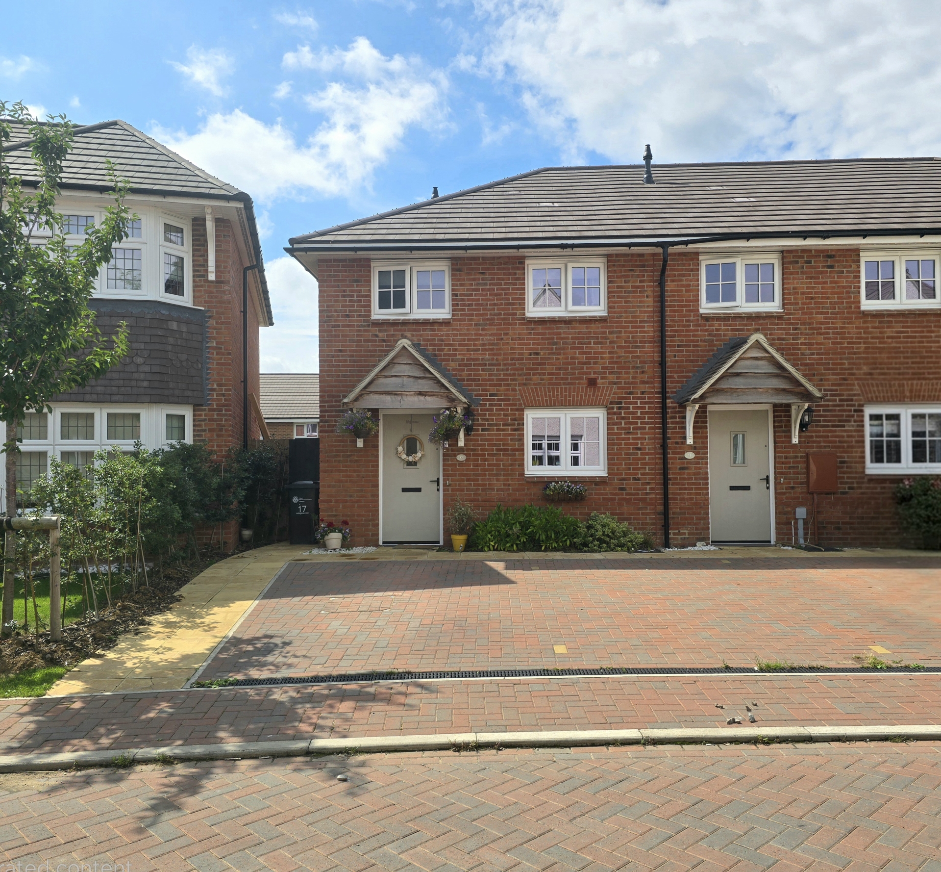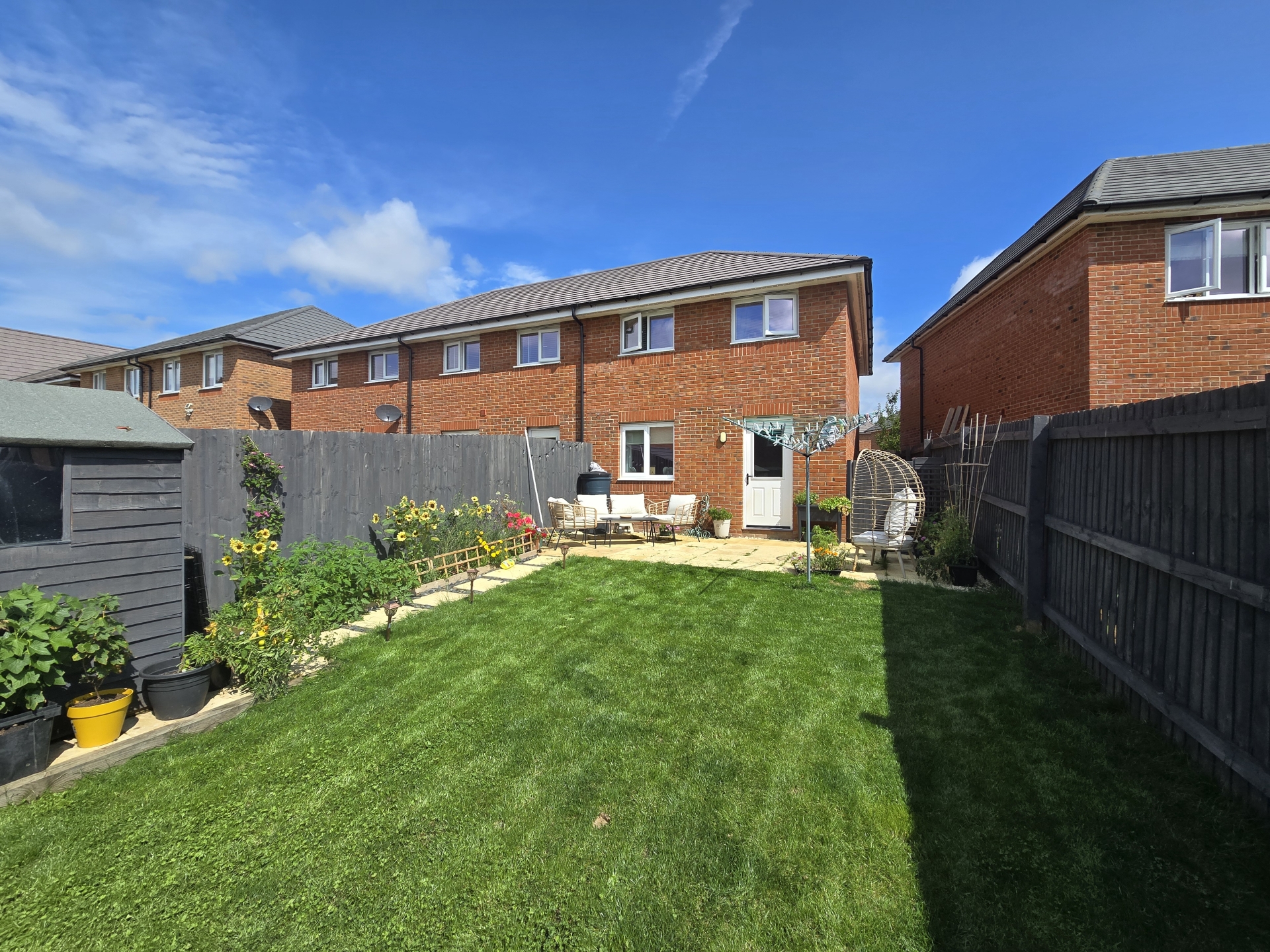 Paved patio. Laid to lawn. Shed. Side access.