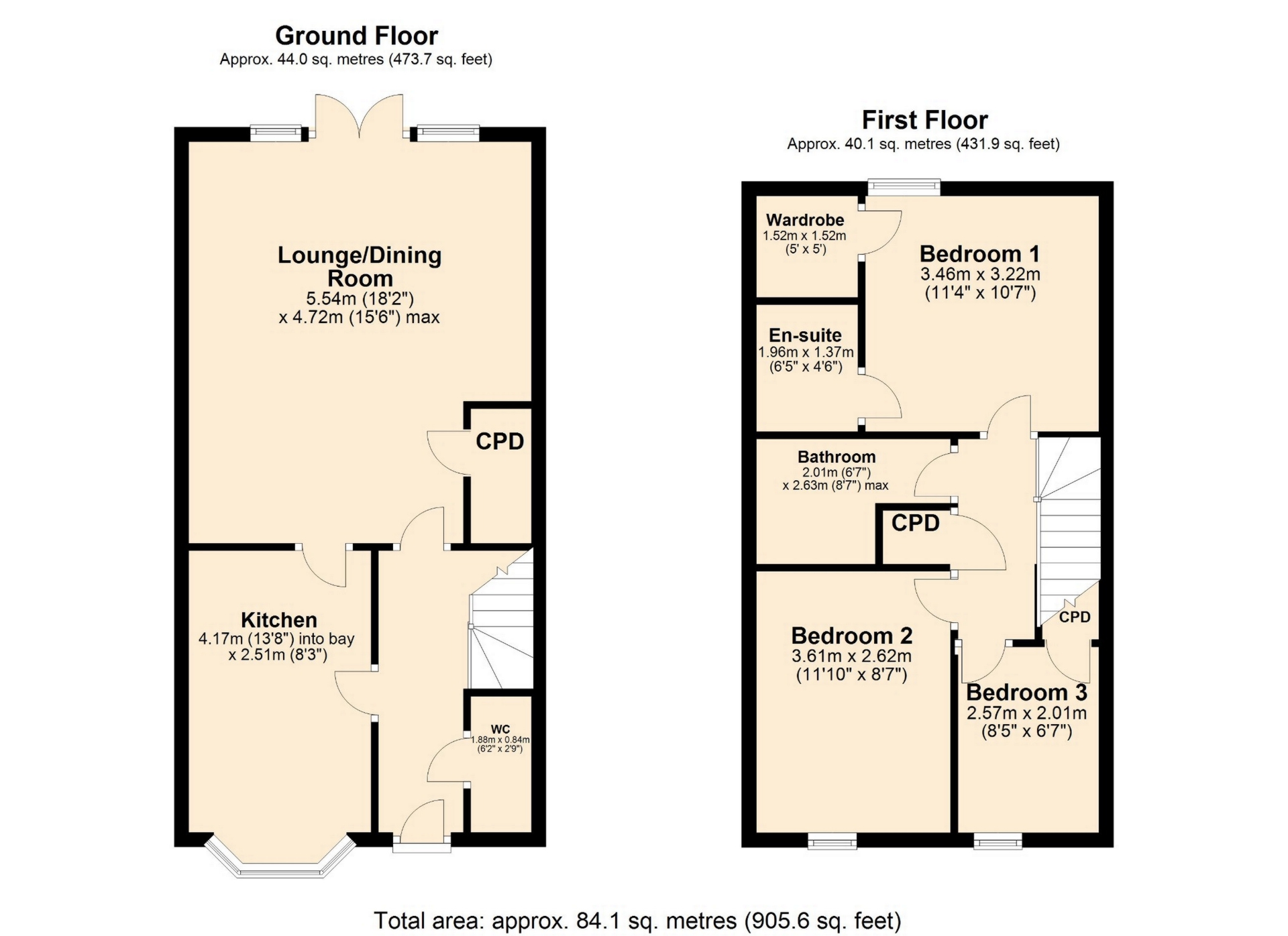 LOUNGE / DINING ROOM 5.54m x 4.72m max (18’2 x 15’6)