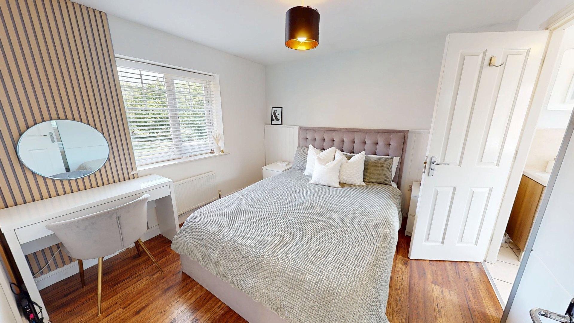 uPVC double glazed window to front elevation. Radiator. Wood effect flooring. Recess for wardrobe. Door to:
