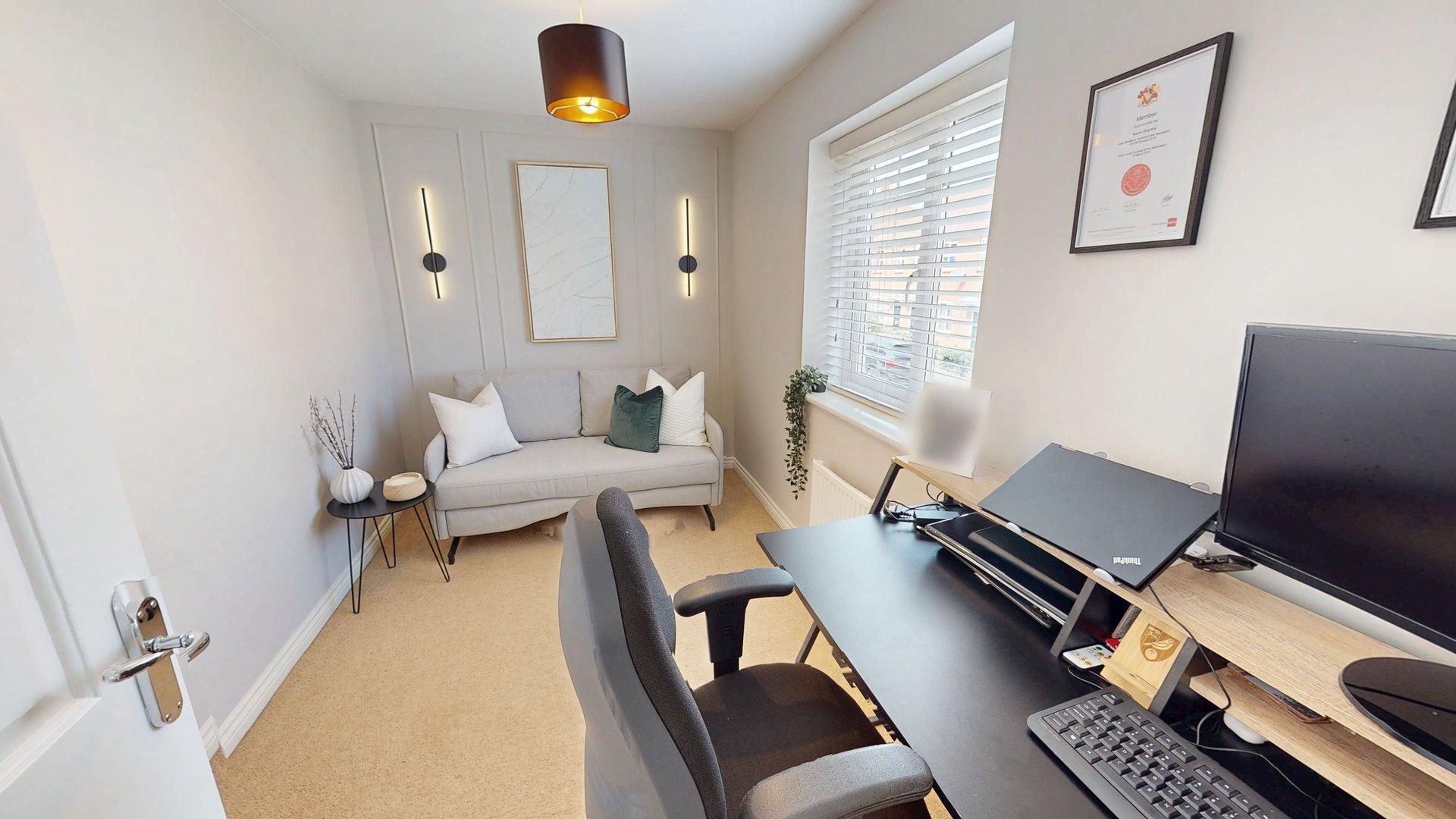 uPVC double glazed window to rear elevation. Radiator. Decorative feature wall.