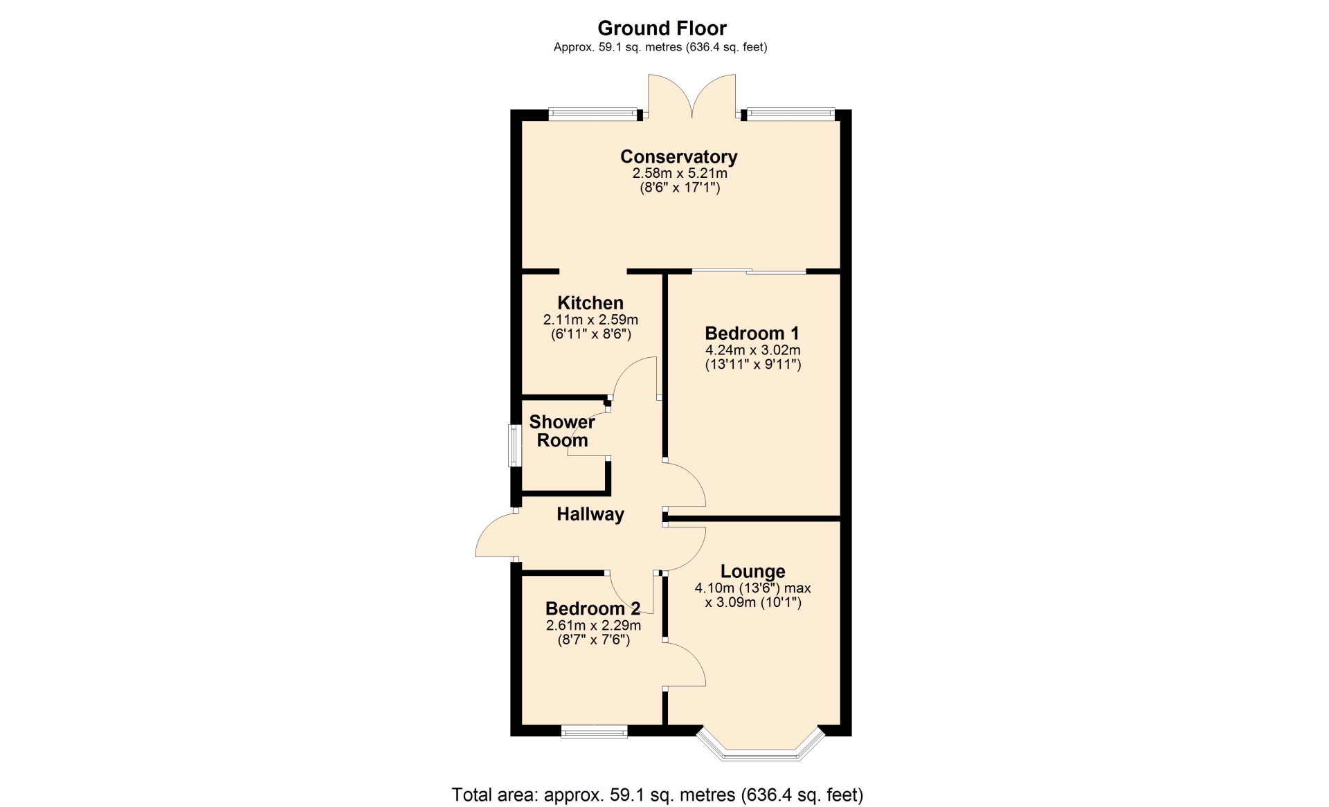 CONSERVATORY 2.58m x 5.21m (8'5" x 17'1")