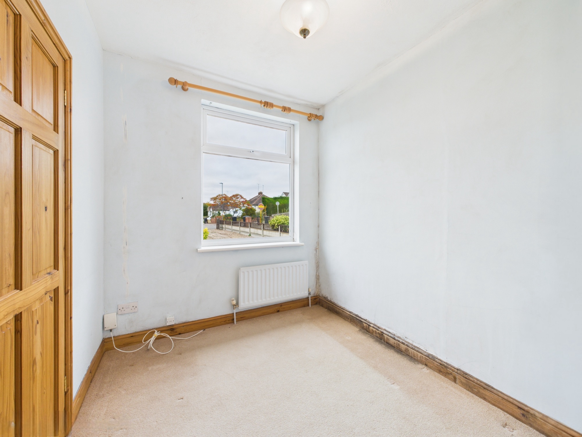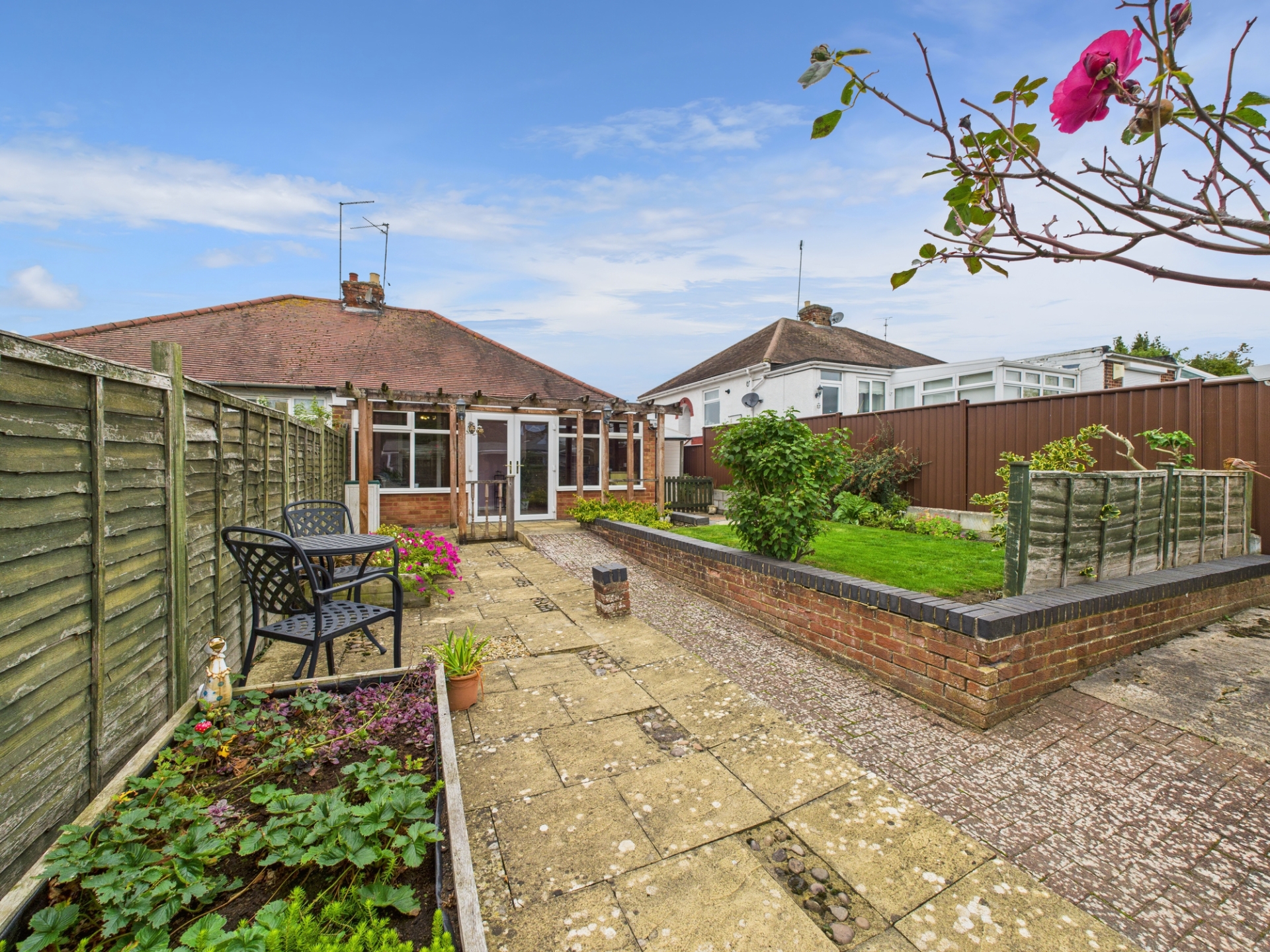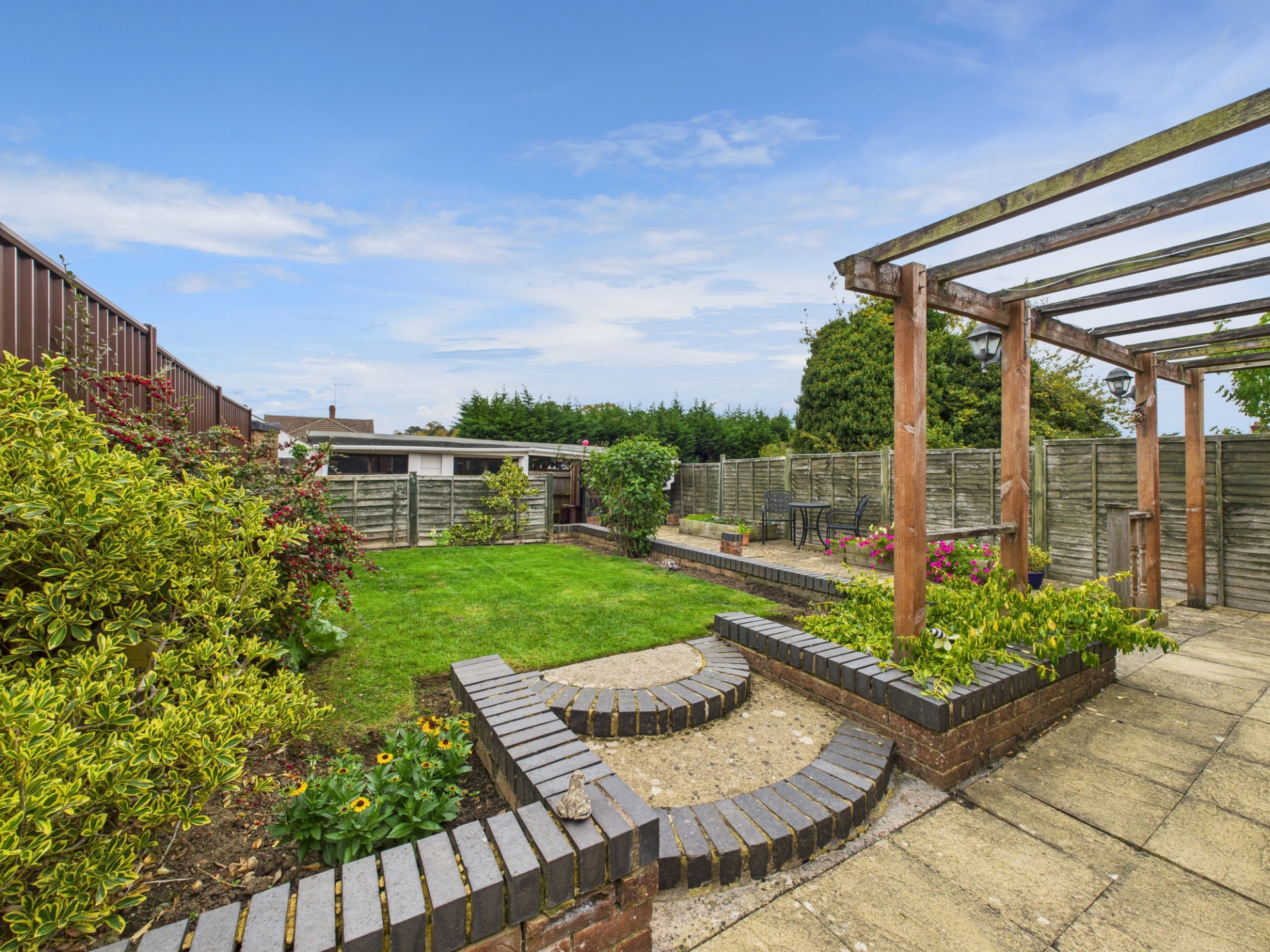 Generous front garden on approach offering off road parking. Artificial lawn. Leading to the side gate and entrance door.