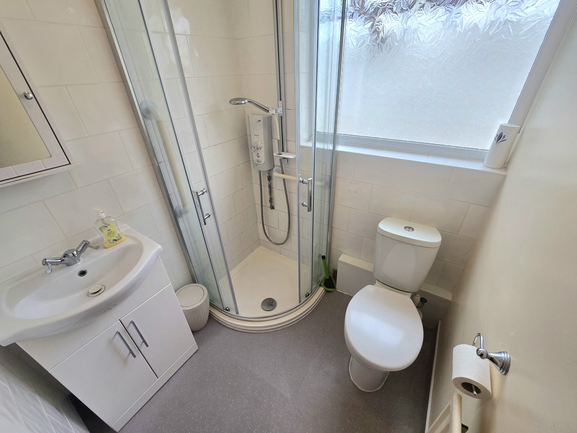 Obscured double glazed window to side elevation. Radiator. A three piece suite comprising enclosed shower cubicle, wash hand basin and low level WC. Tiled walls.
