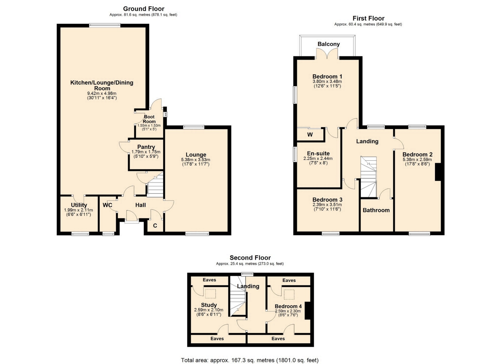 Jackson Grundy are pleased to welcome to the market this four bedroom semi detached property with separate study room on the top floor. Set on a large plot front and rear with countryside views comprising entrance hall, WC, dual aspect lounge with a wood burner, a real special feature is the 30ft kitchen/lounge/dining room with views to the rear and side garden, separate utility room and boot room with covered entrance. The first floor has three bedrooms, the main bedroom benefits from built in wardrobes, balcony overlooking the rear fields and a four piece en-suite bathroom. There is also a family bathroom. The top floor has bedroom four and the office space. EPC Rating: E. Council Tax Band: C