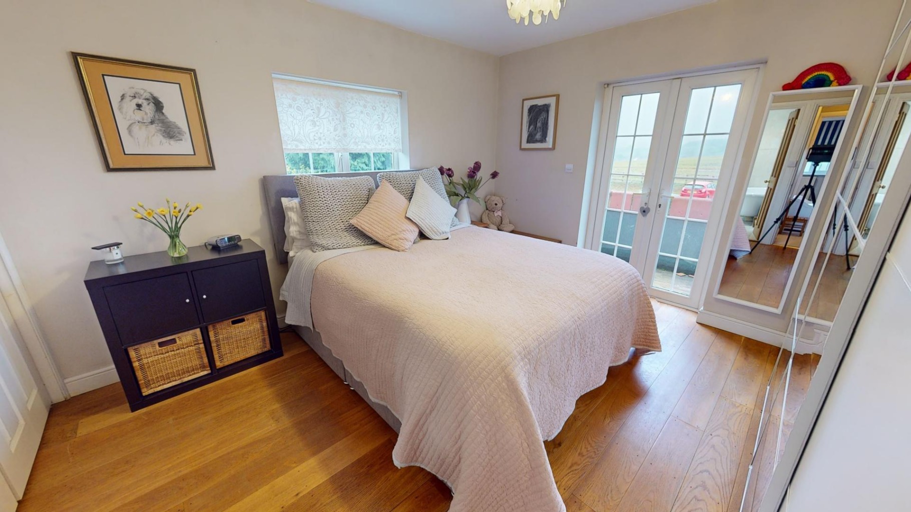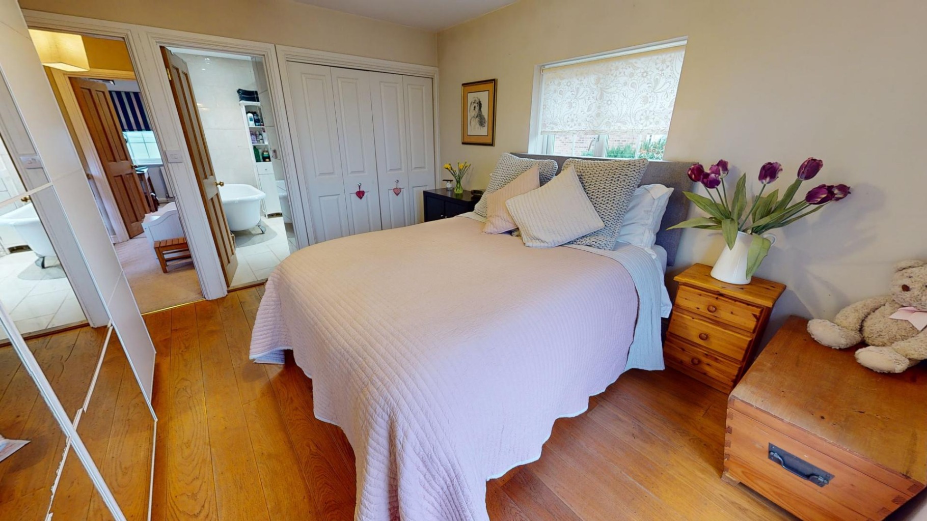 uPVC double glazed window to side elevation. French doors to balcony. Upright radiator. Built in wardrobe. Wood effect flooring. Access to loft. Door to en-suite.