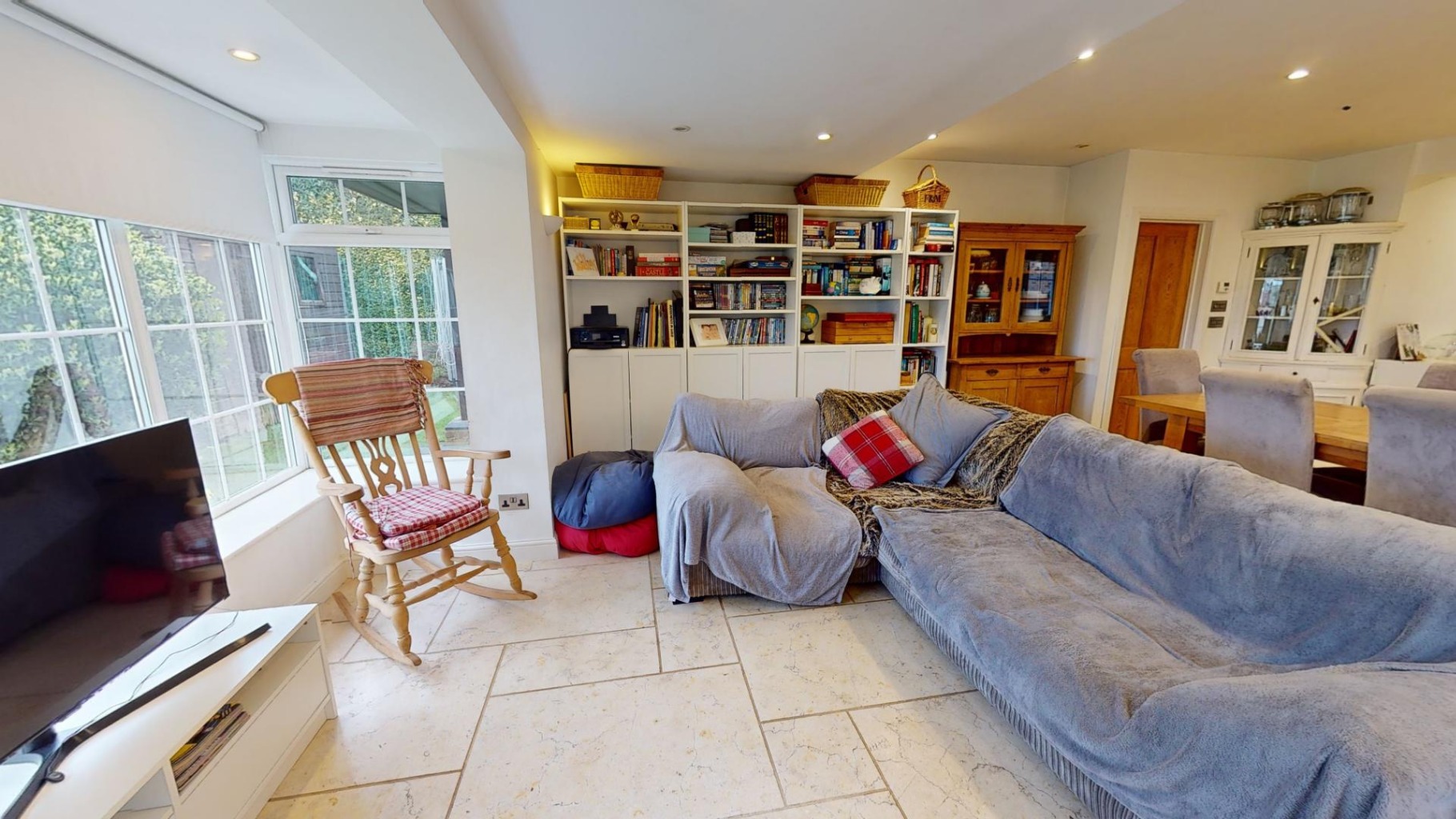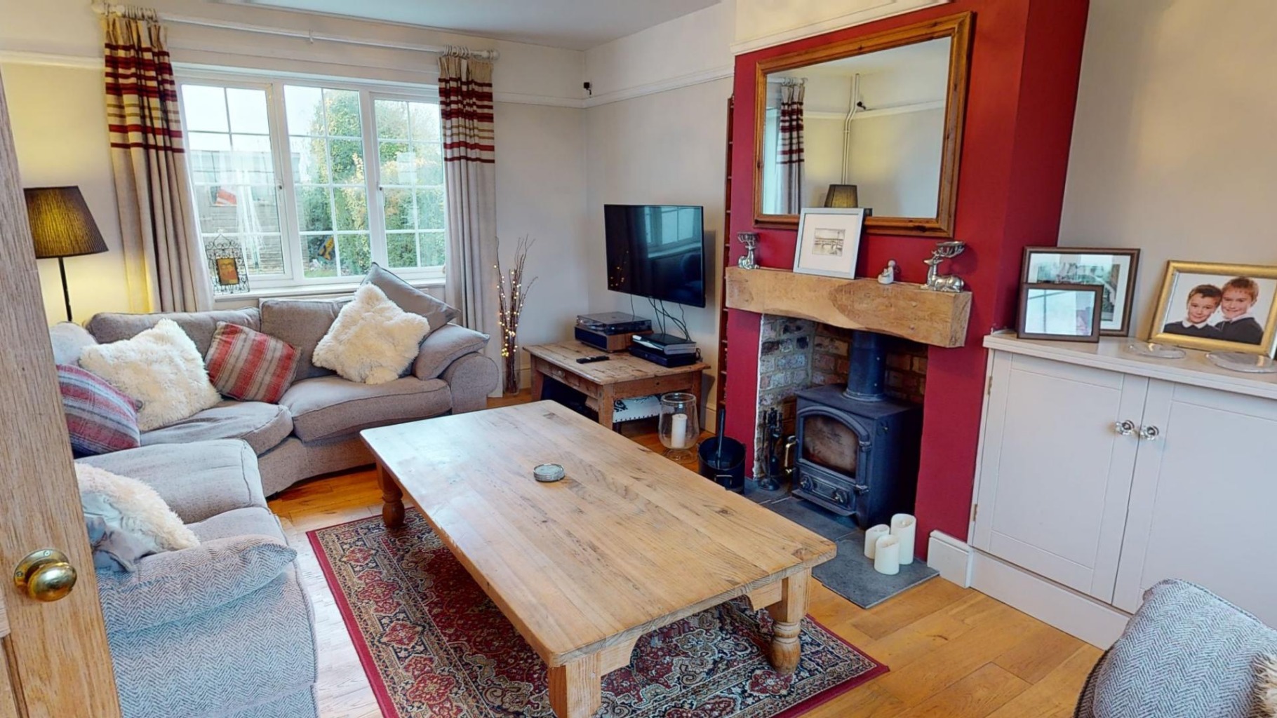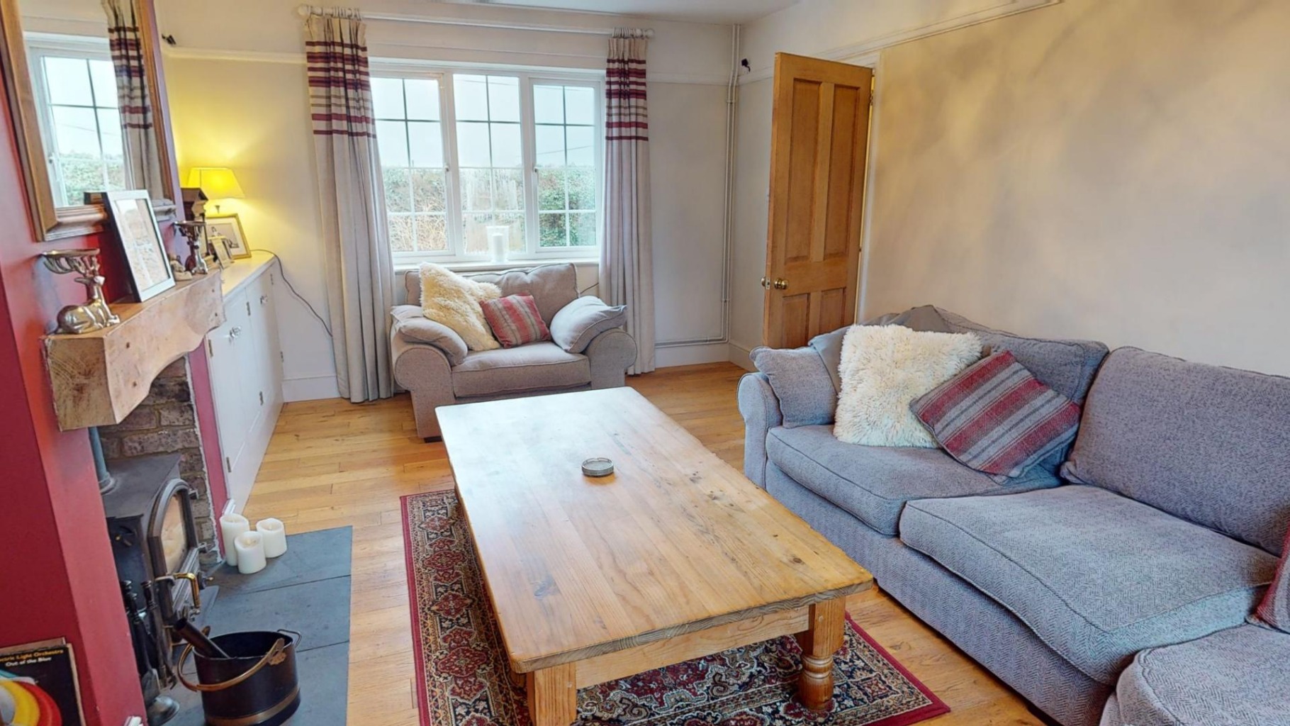 Dual aspect uPVC double glazed windows to front and rear elevations. Two radiators. Wood effect flooring. Feature picture rails. Wood burning stove with slate hearth and wooden mantel.