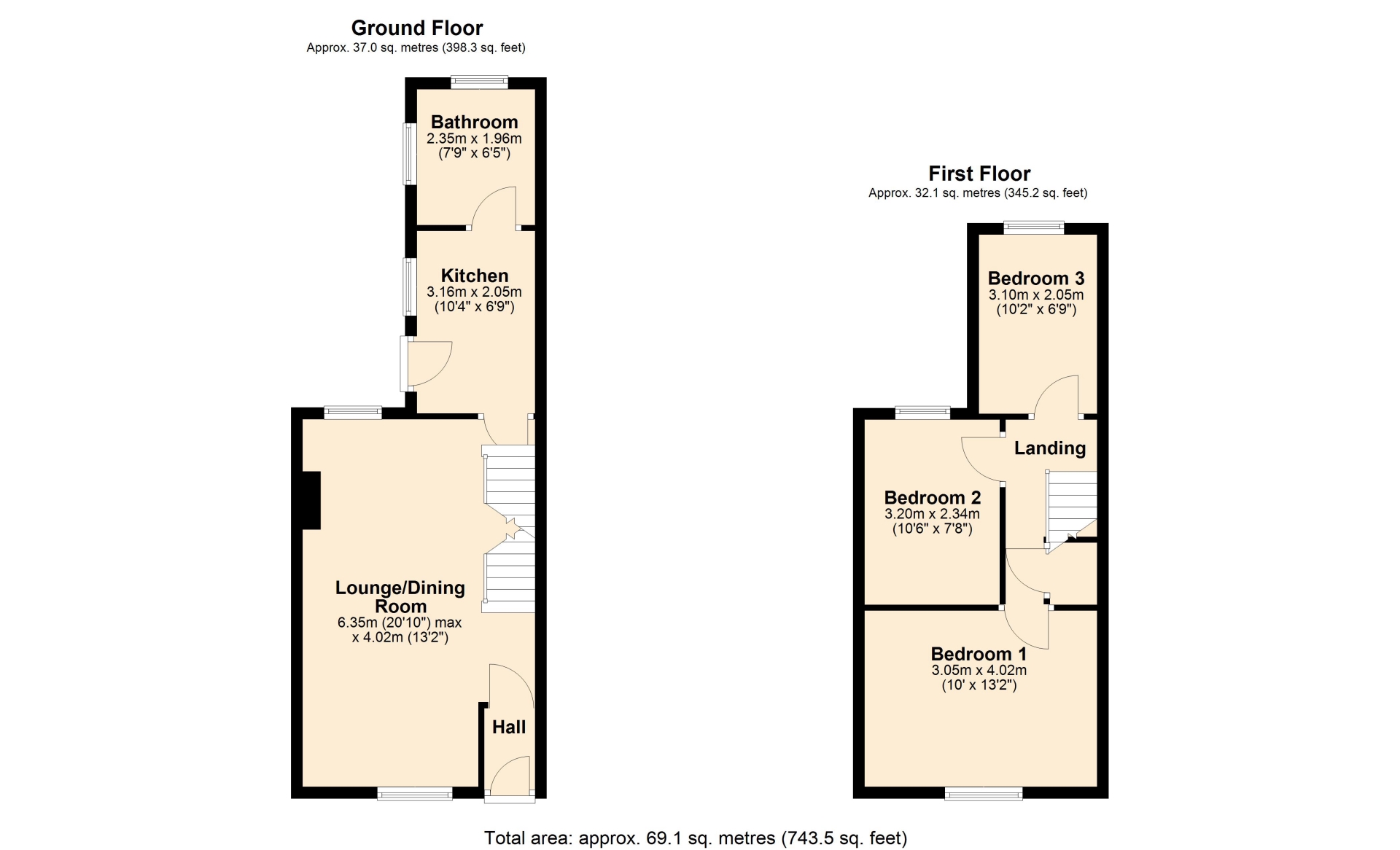 BEDROOM TWO 3.20m x 2.34m (10'6" x 7'8")