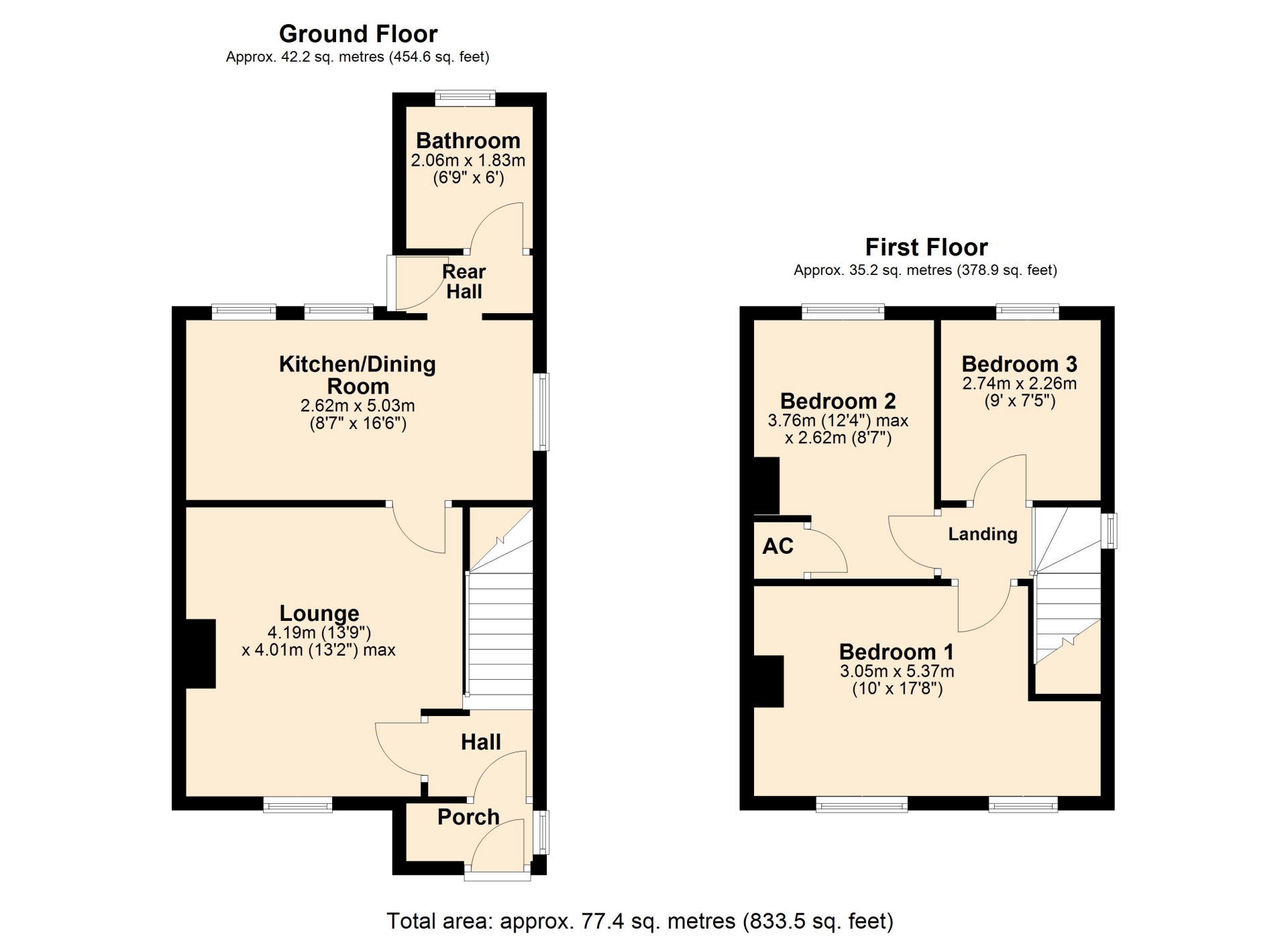 BEDROOM THREE 2.74m x 2.26m (9' x 7'5")