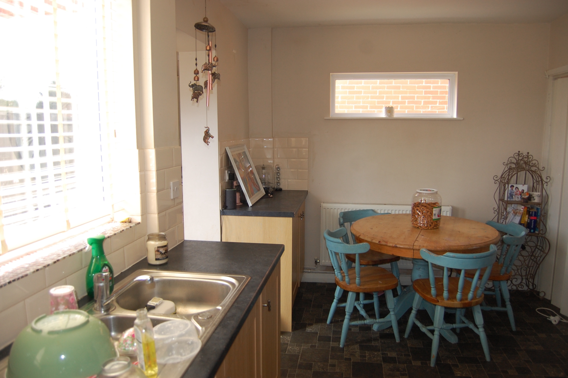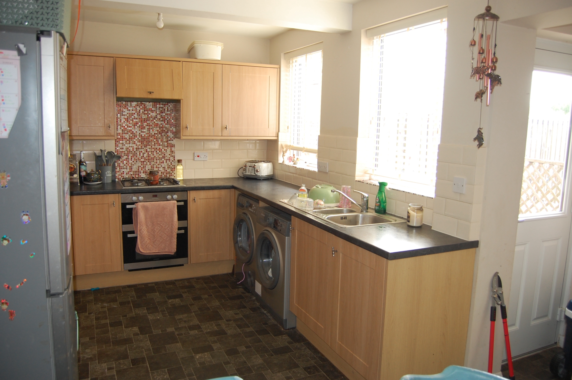 Two windows to rear elevation. Window to side elevation. Radiator. Fitted with a range of wall, base and drawer units with work surfaces over. Built in oven, grill, hob and extractor. One and a half bowl sink unit. Tiled splash back. Understairs storage cupboard. Door to the garden.