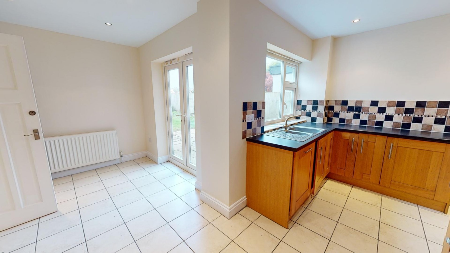 uPVC double glazed French doors to rear garden. Radiator. Door to inner hallway.