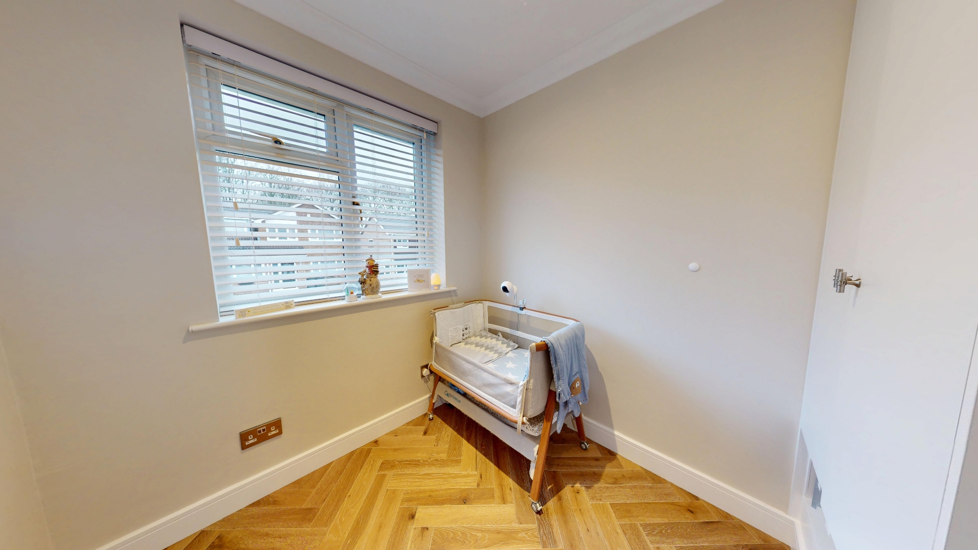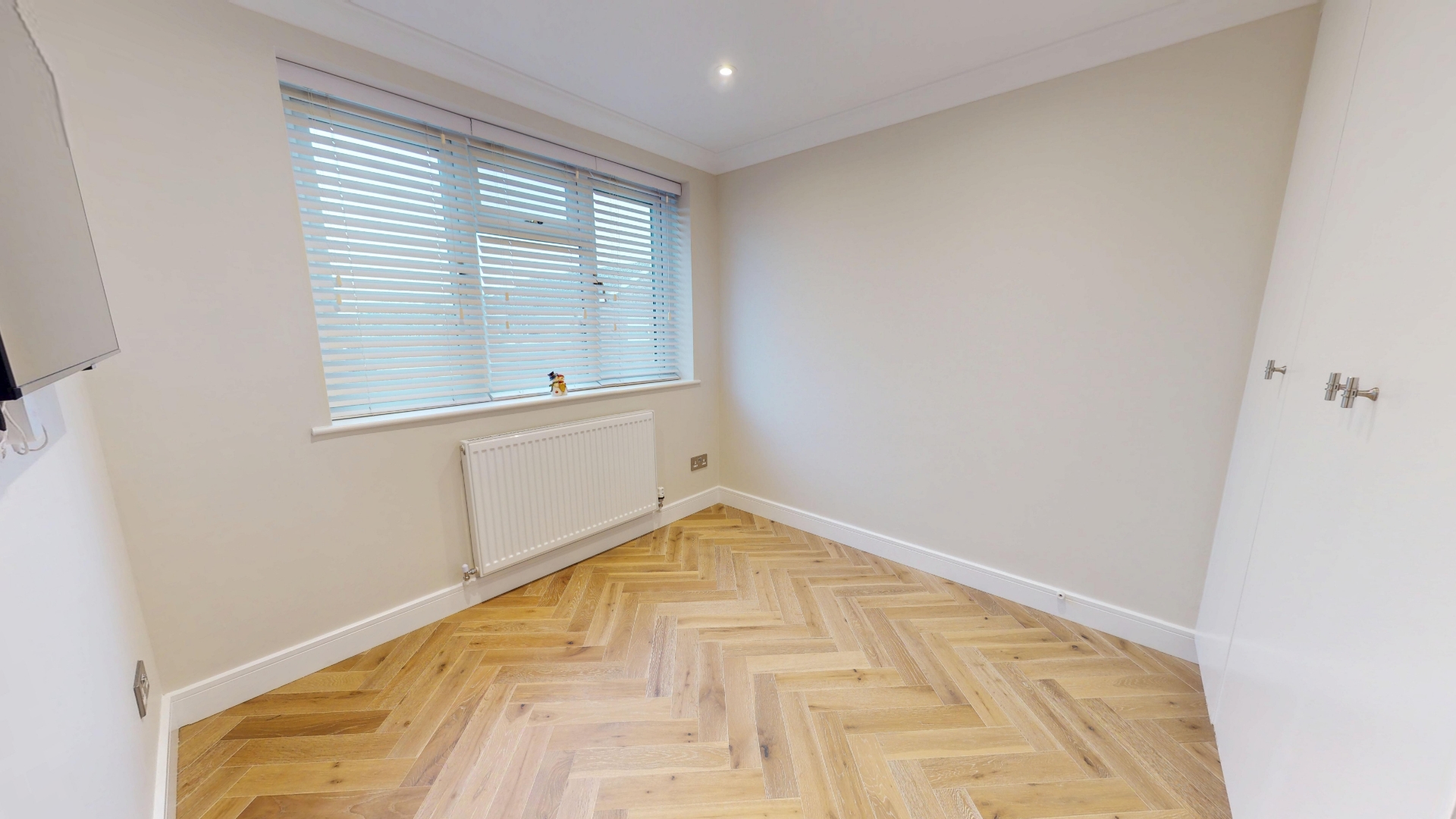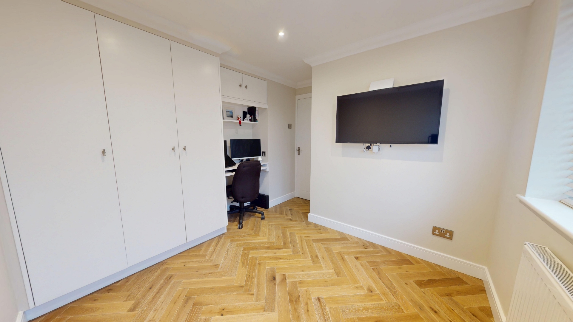 Double glazed window to rear elevation. Radiator. Engineered wood floor. Coving. Inset ceiling lights. Fitted wardrobes and desk.