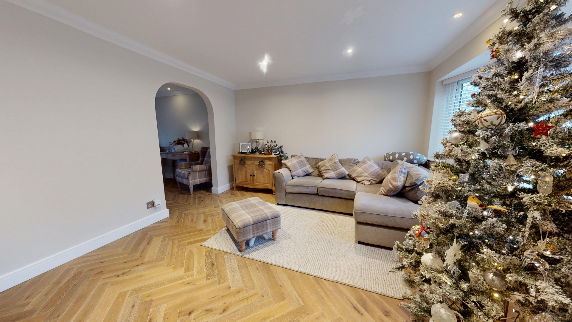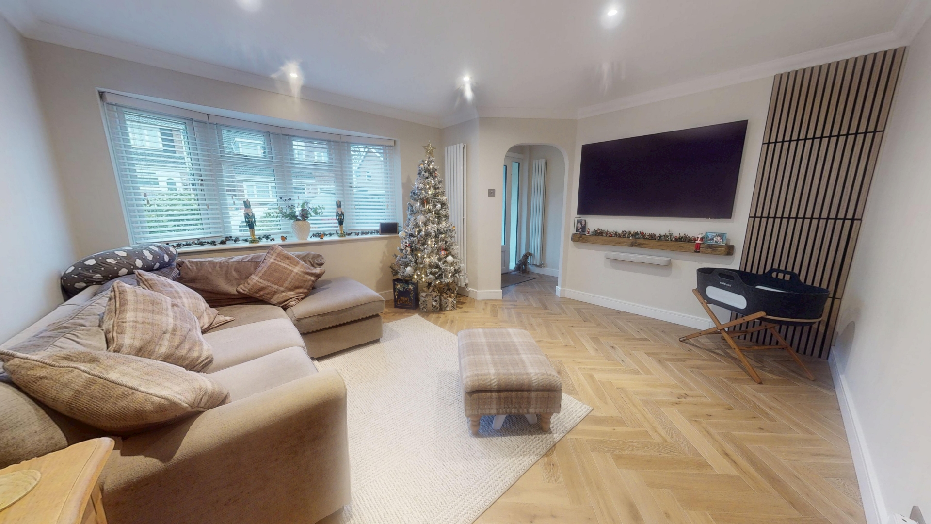 Double glazed bow window to front elevation. Radiator. Coving. Inset ceiling lights. Concealed storage cupboard. Archway to:
