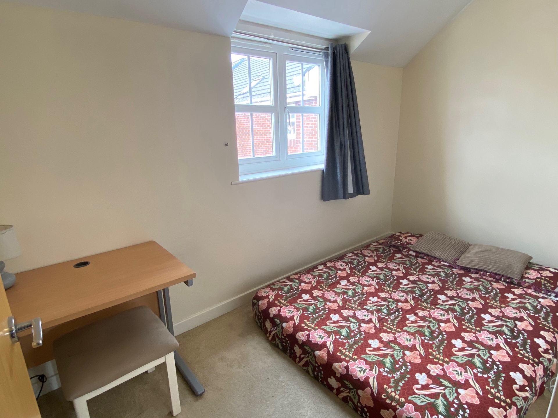 Double glazed window to side elevation. Wall mounted electric heater. Airing cupboard. Built in wardrobe.