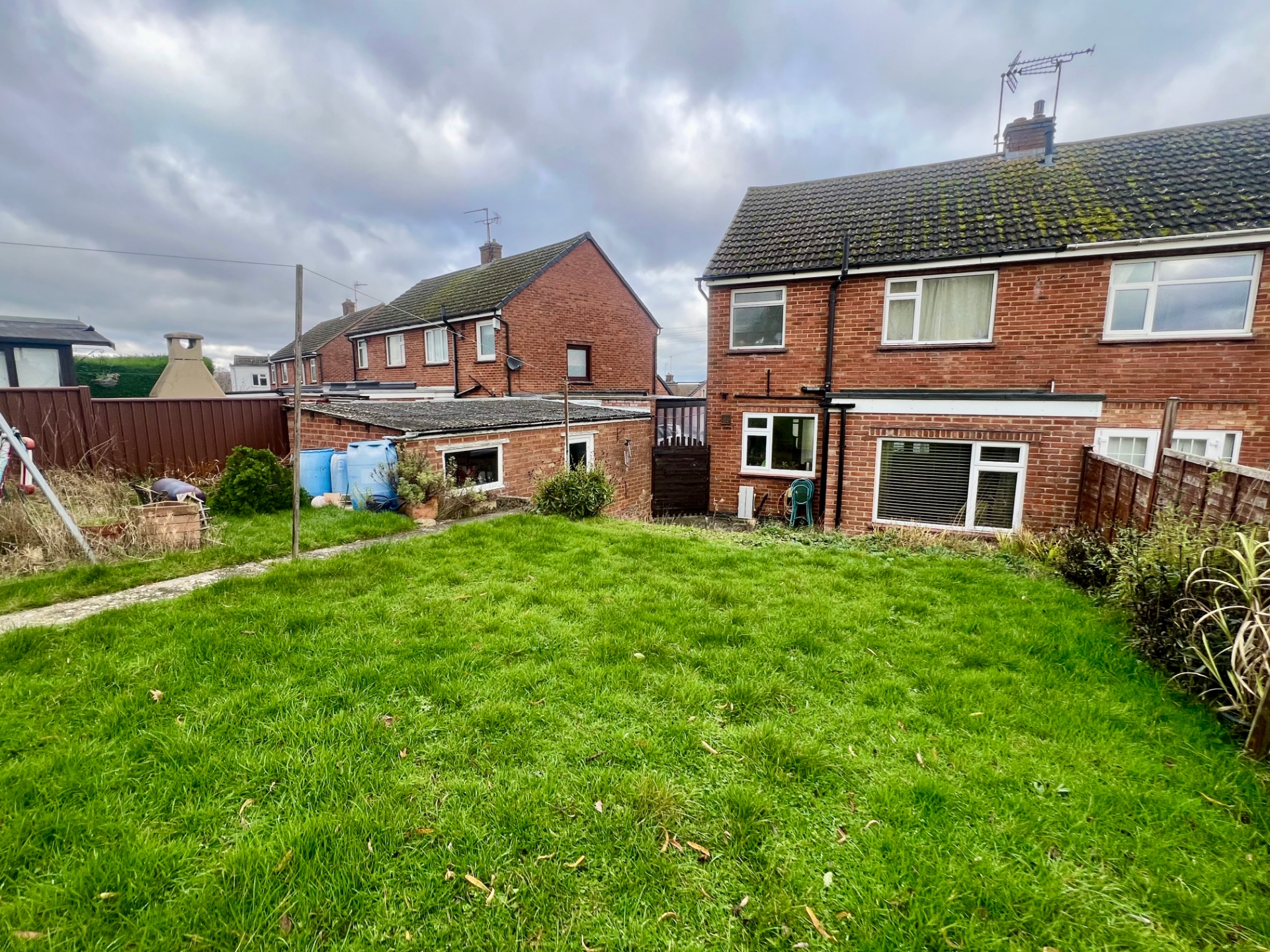 This three bedroom semi detached home on the Inlands Estate, offered with no upper chain. Includes off road parking, a single garage, and a private south facing garden. Layout features a porch, hallway, kitchen, lounge/dining room, garden room, three bedrooms, and a family bathroom.