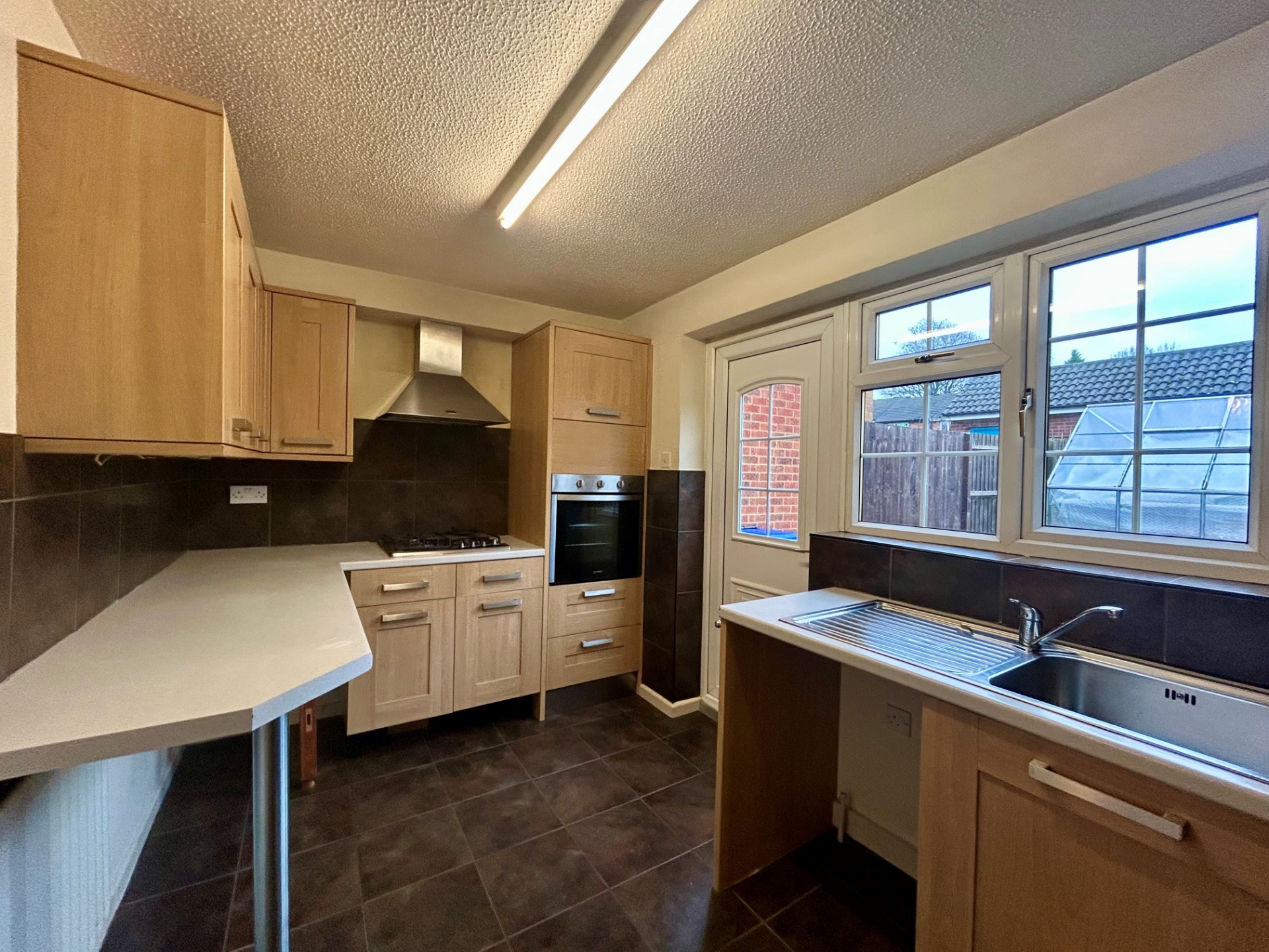 uPVC double glazed window to rear elevation. uPVC double glazed single door to rear garden. Range of wall and base level units. Vinyl flooring. Tiled splashbacks.