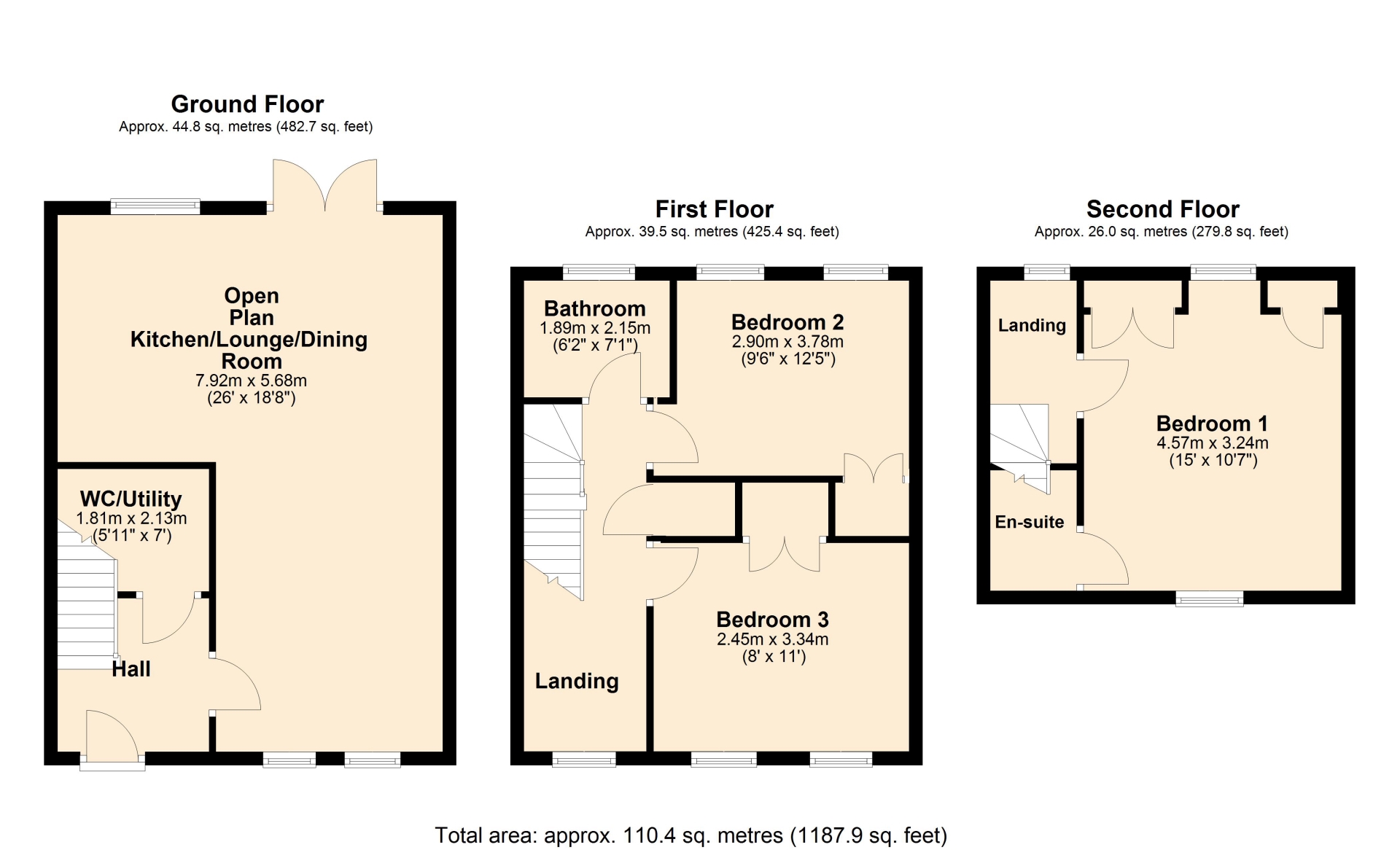 BEDROOM THREE 2.45m x 3.34m (8' x 10'11")