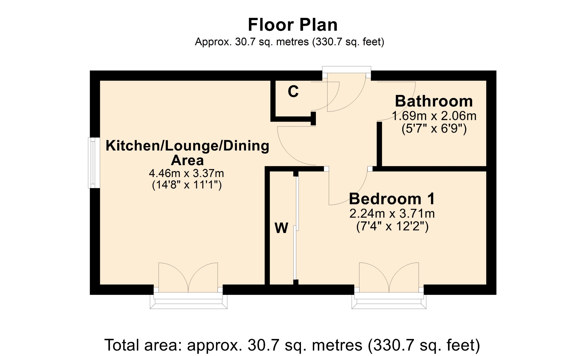 KITCHEN/LOUNGE/DINING ROOM 4.46m x 3.37m (14'7" x 11')