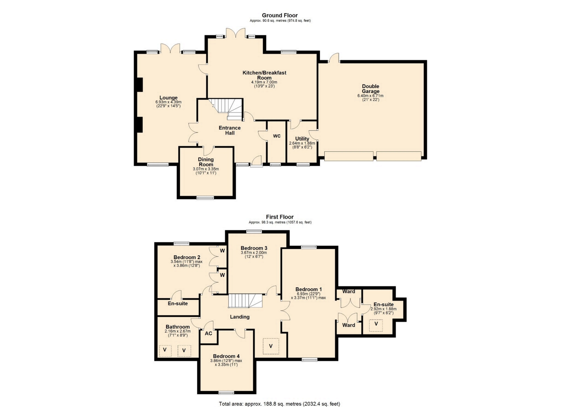 Upstairs, both the principal and second bedrooms benefit from built-in wardrobes and stylish en-suite shower rooms. Two further well-proportioned bedrooms are served by a contemporary family bathroom.