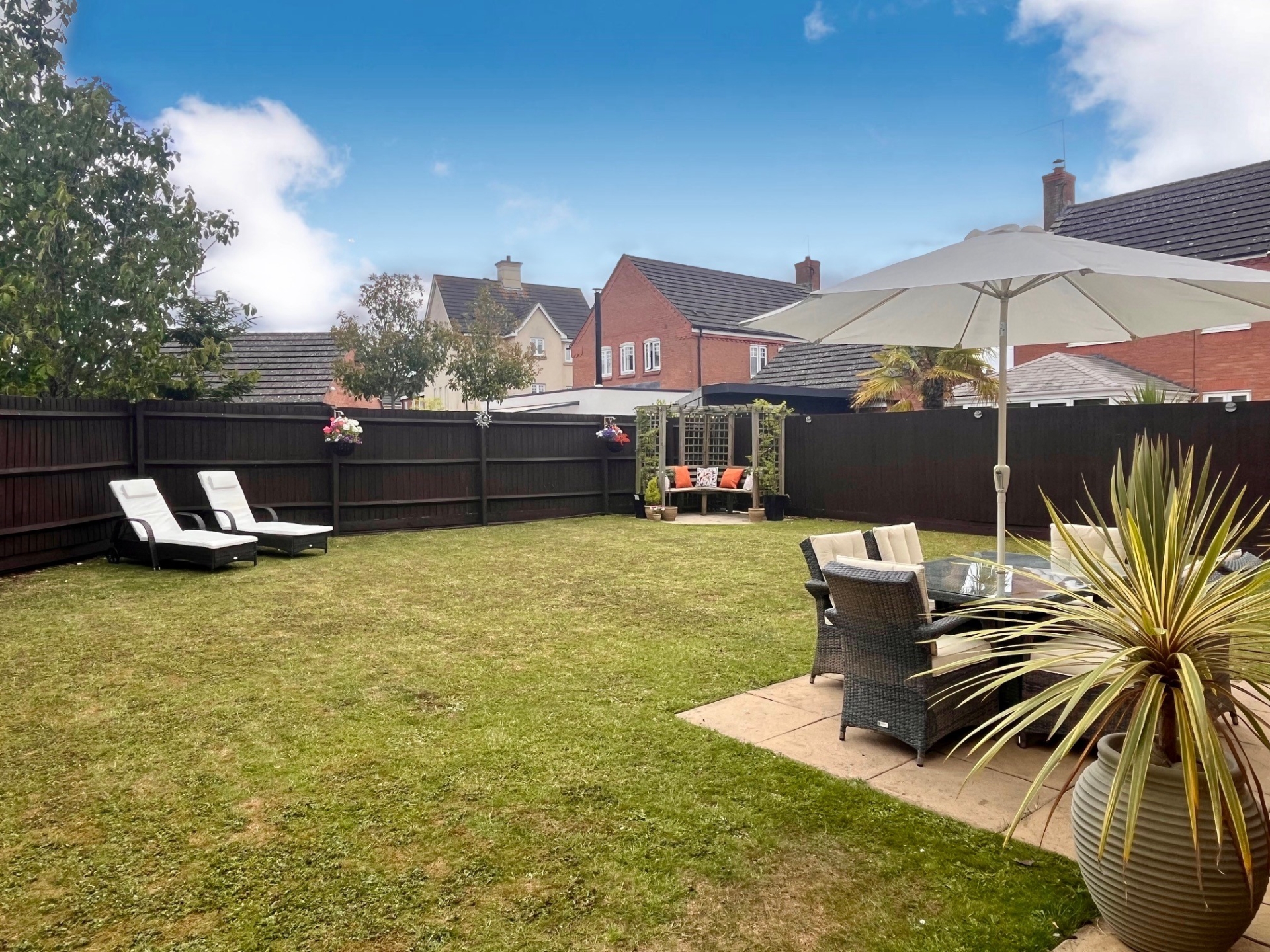 Outside, the property boasts a large driveway with ample turning space and a double garage offering internal access via the utility room. The rear garden is mainly laid to lawn with two attractive paved seating areas, perfect for relaxing or entertaining.