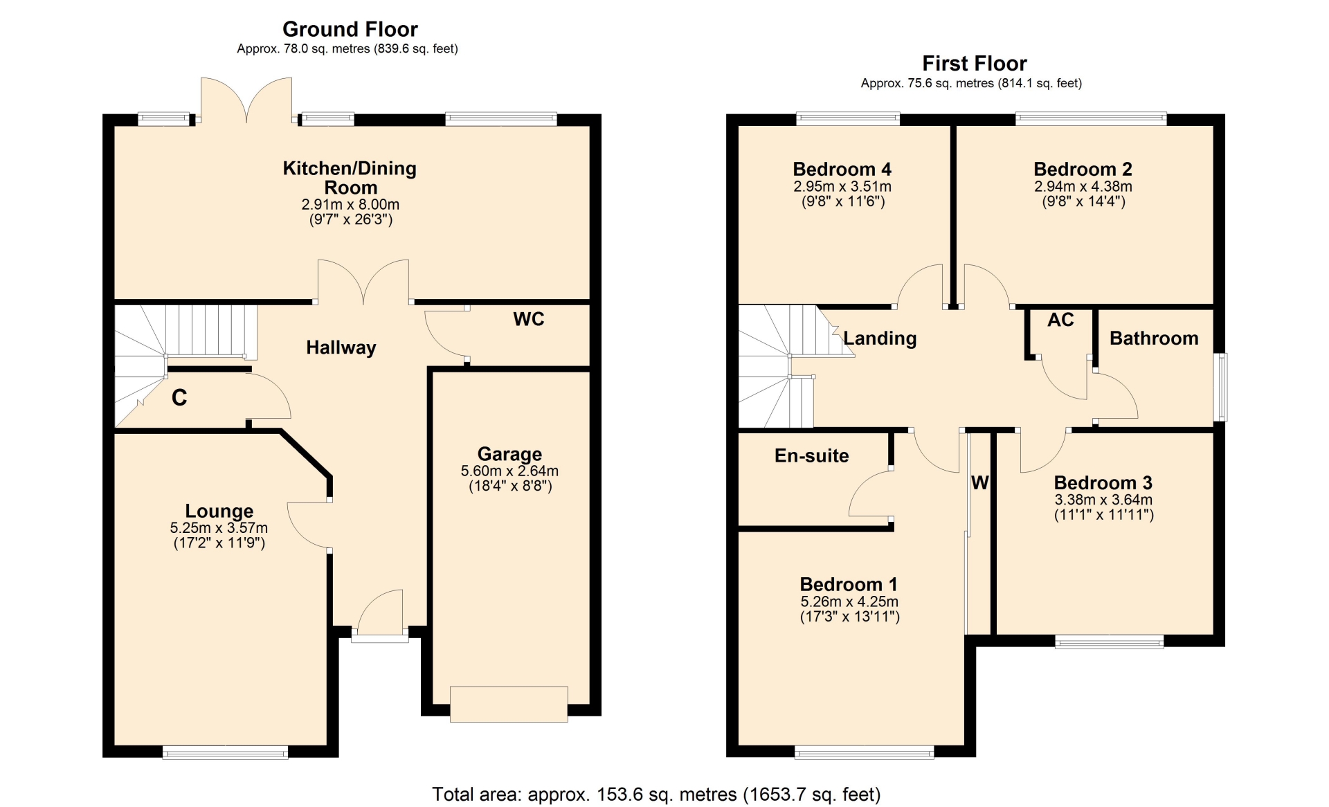 BEDROOM ONE 5.26m x 4.25m (17'3" x 13'11")