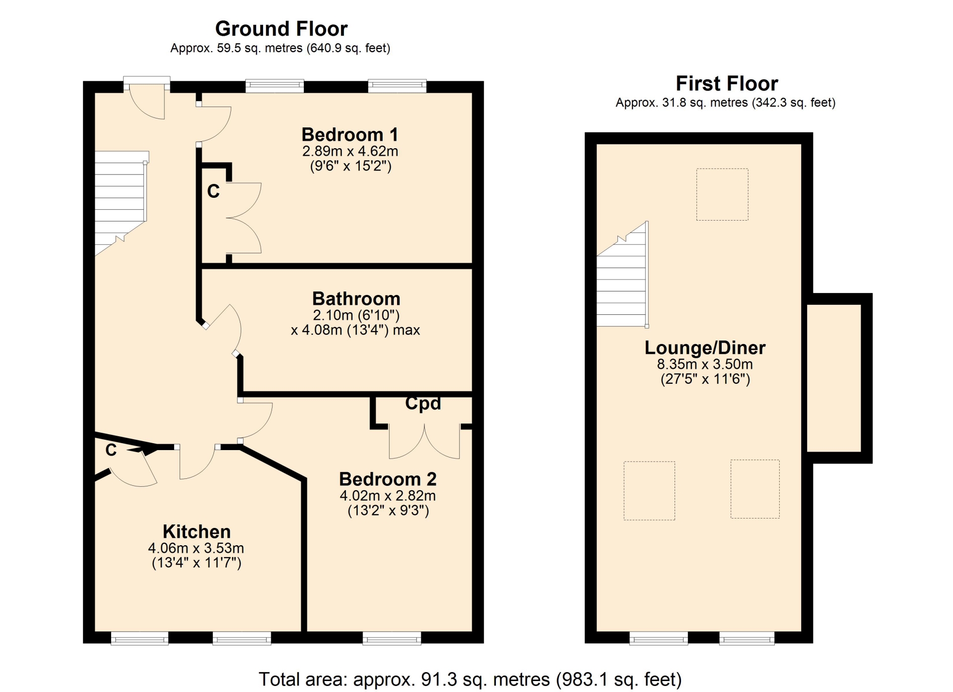 LOUNGE/DINER 8.36m x 3.51m (27'5" x 11'6")