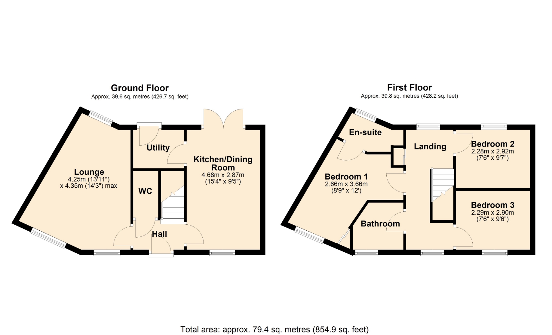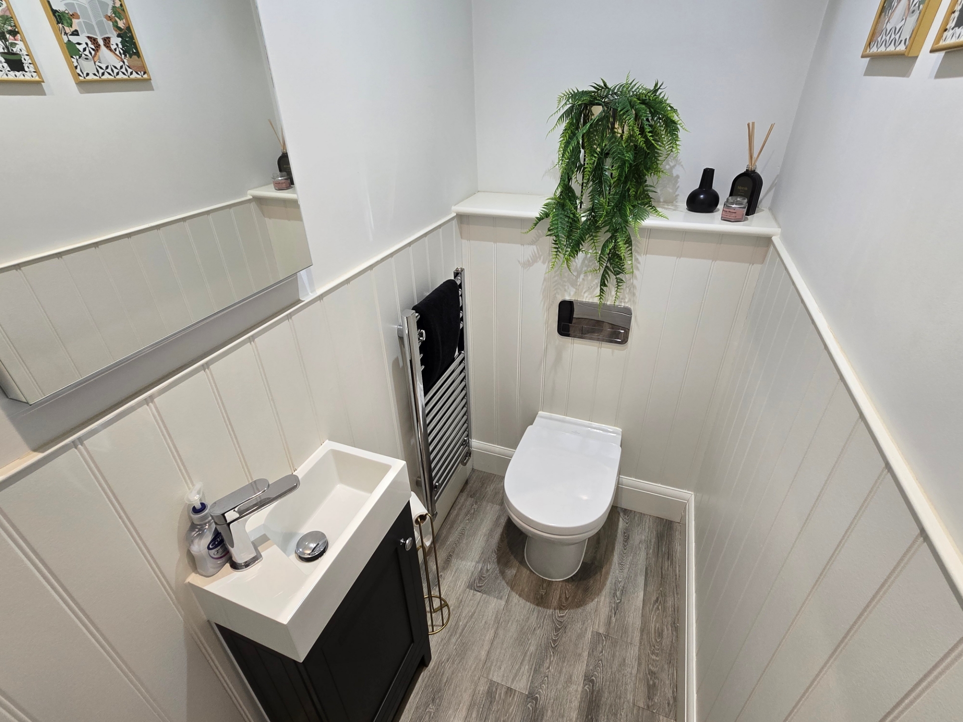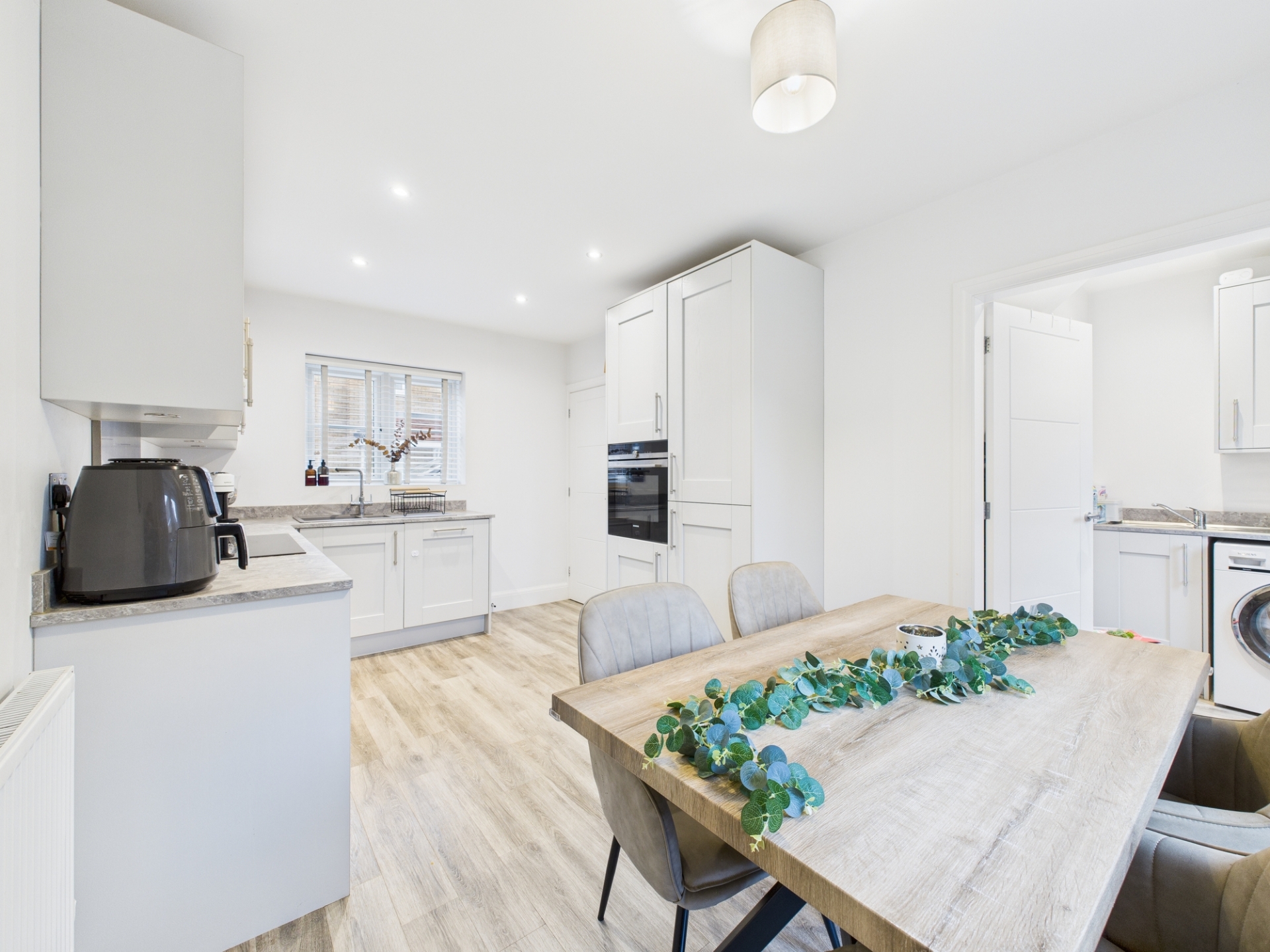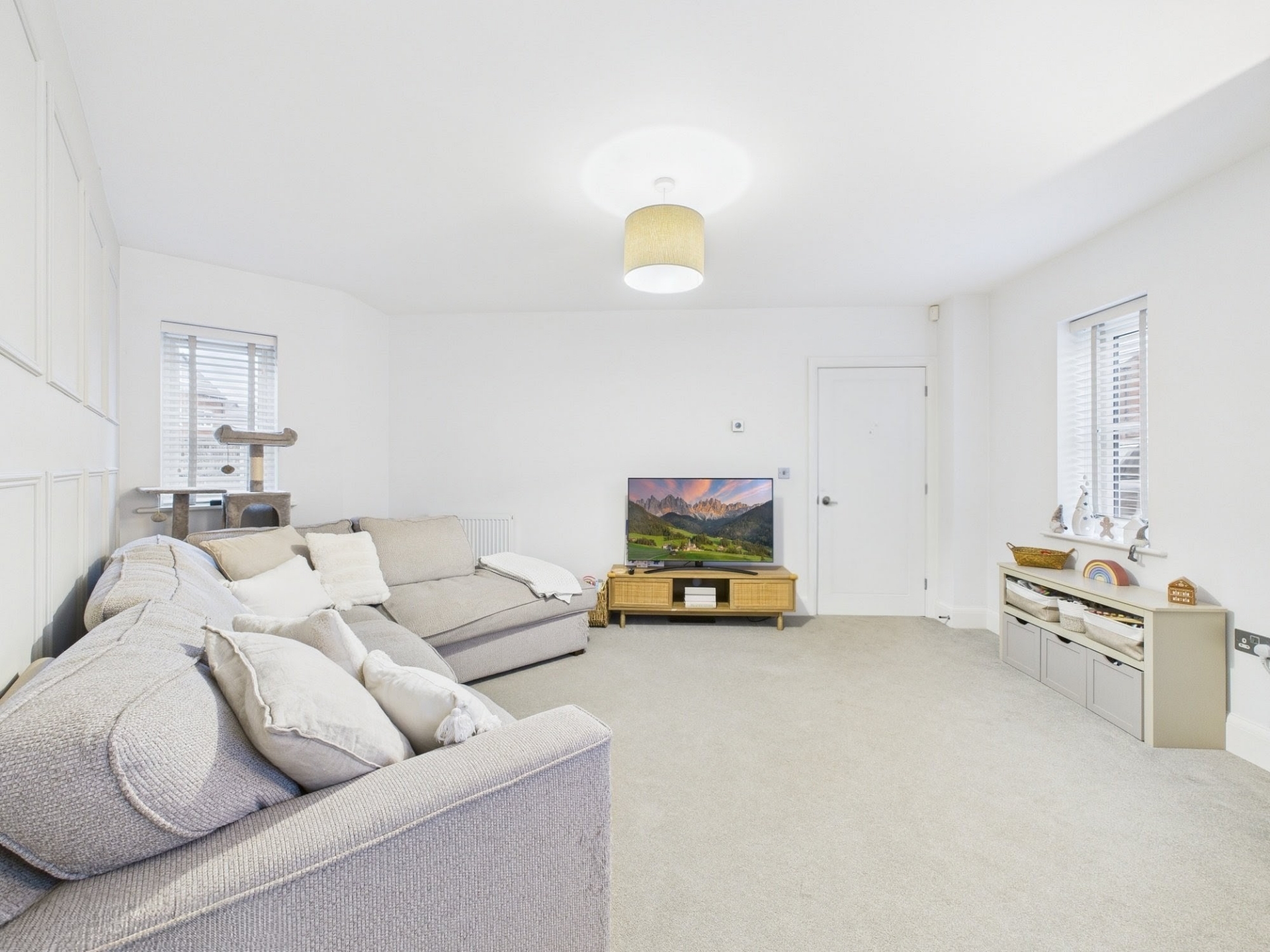 Upstairs, the home offers a generous principal bedroom with fitted wardrobes, a further double bedroom and a well proportioned third bedroom, ideal as a nursery or home office, all served by a modern family bathroom.