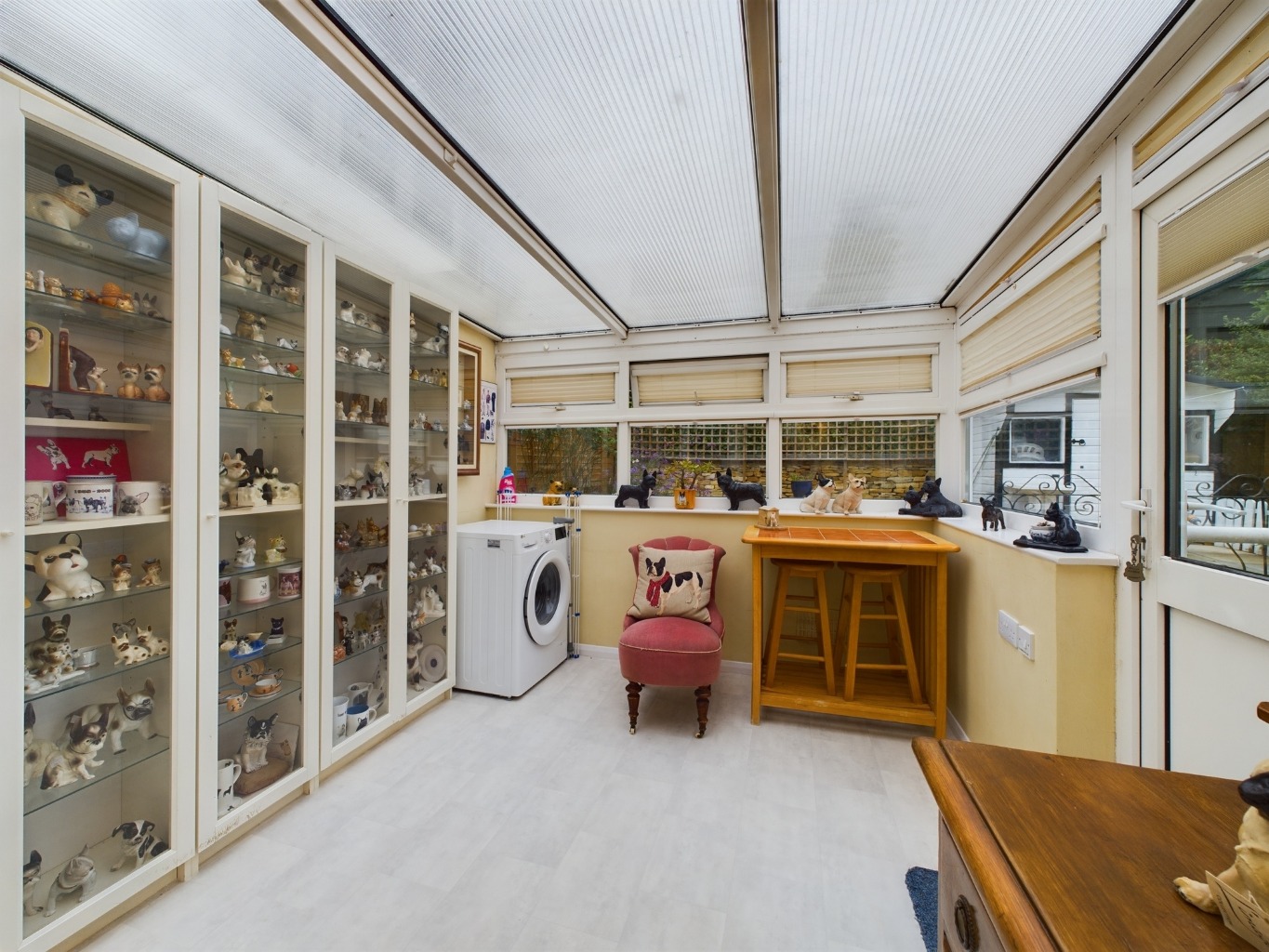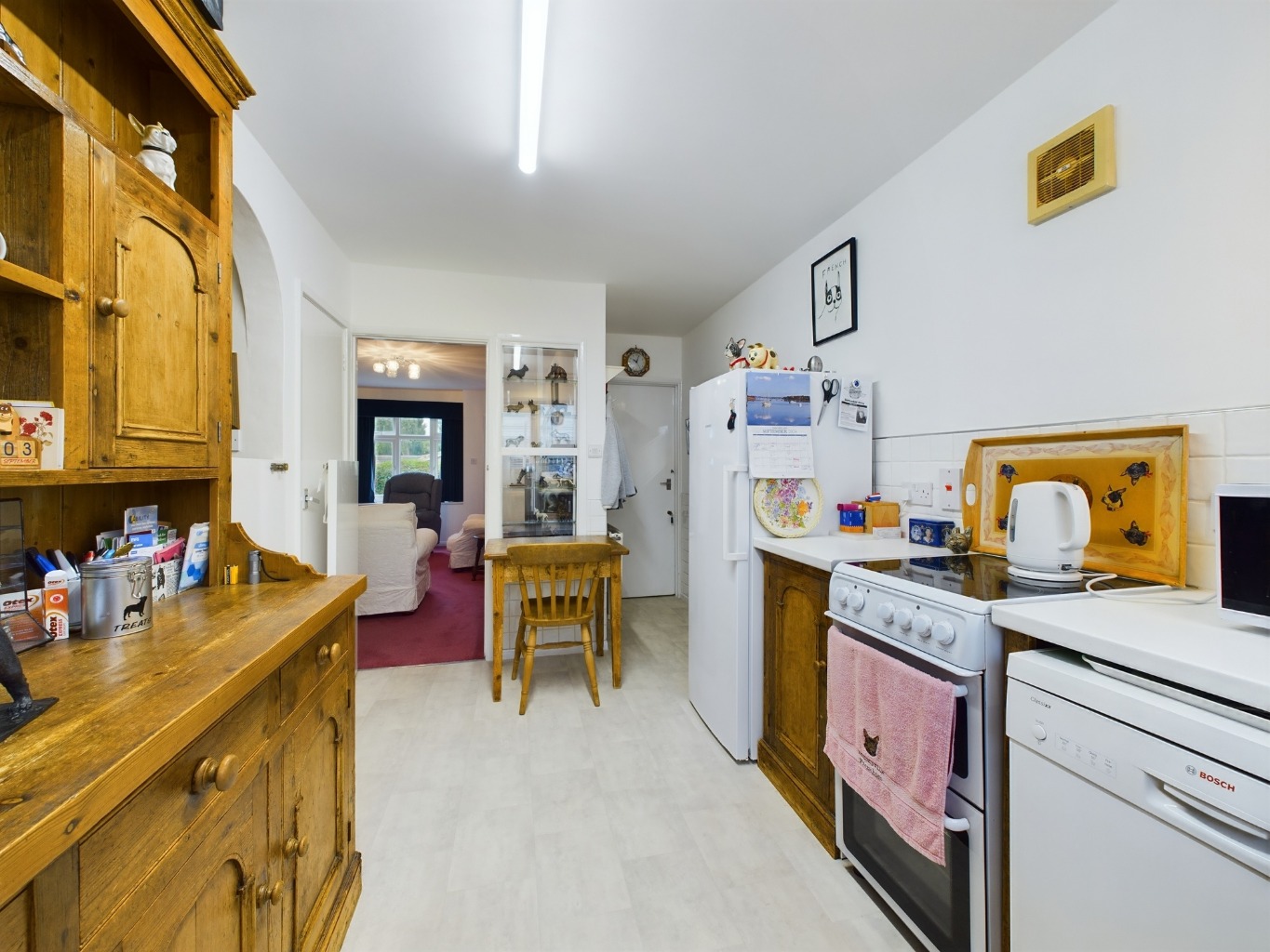 Window and door to conservatory. Radiator. Fitted with a range of wall, base and drawer units with work surfaces over. Stainless steel sink unit. Space for cooker, fridge / freezer and dishwasher. Pantry Cupboard.