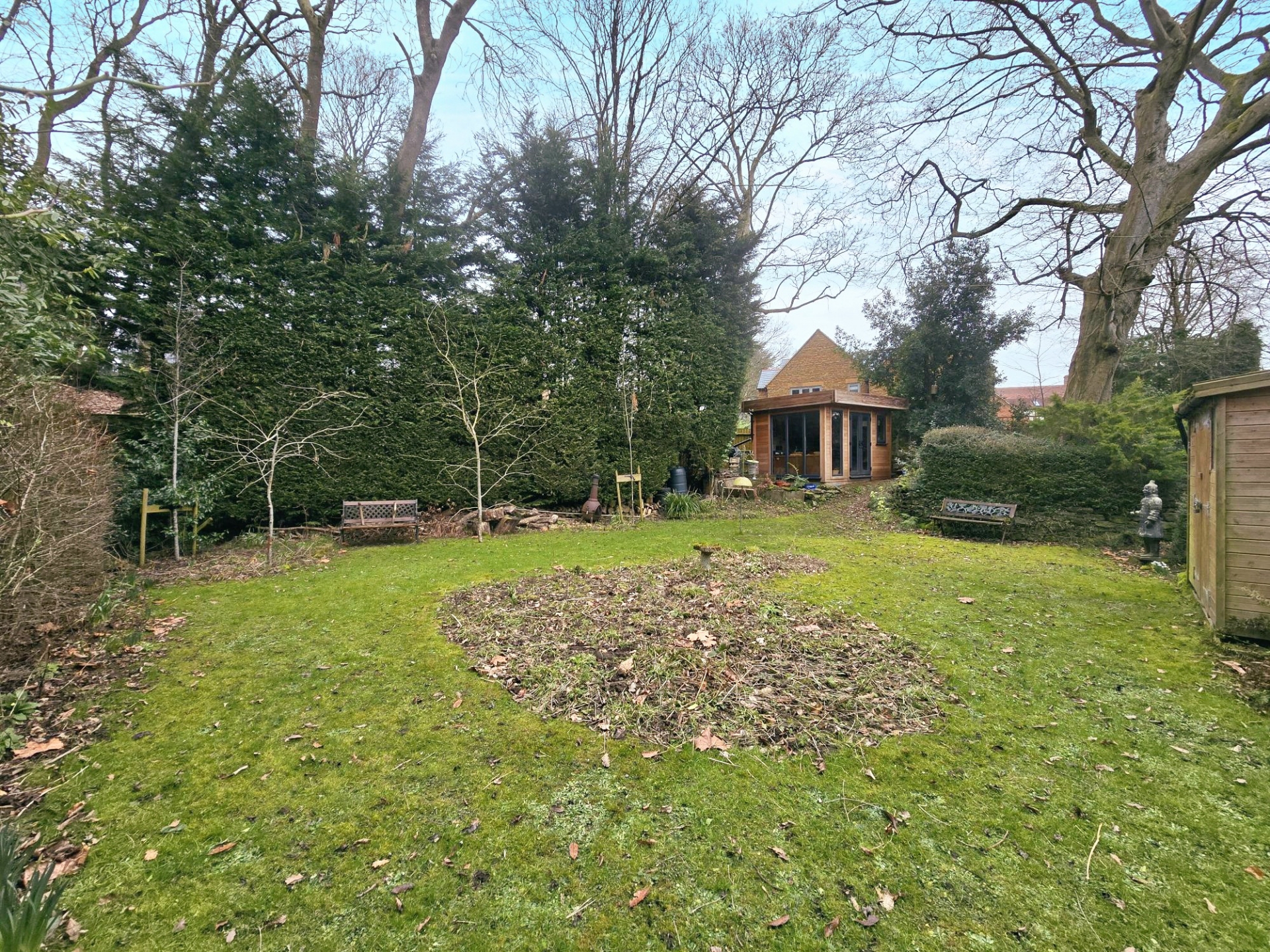 Large landscaped space. Mainly laid to lawn partially boarded with mature trees and shrubs. Patio entertainment area and greenhouse.