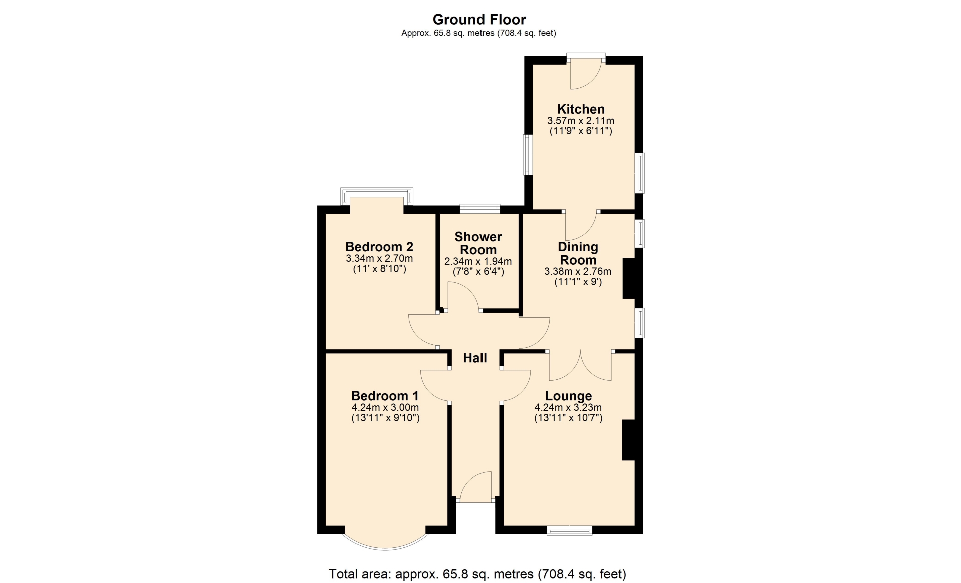 BEDROOM TWO 3.34m x 2.70m (10'11" x 8'10")