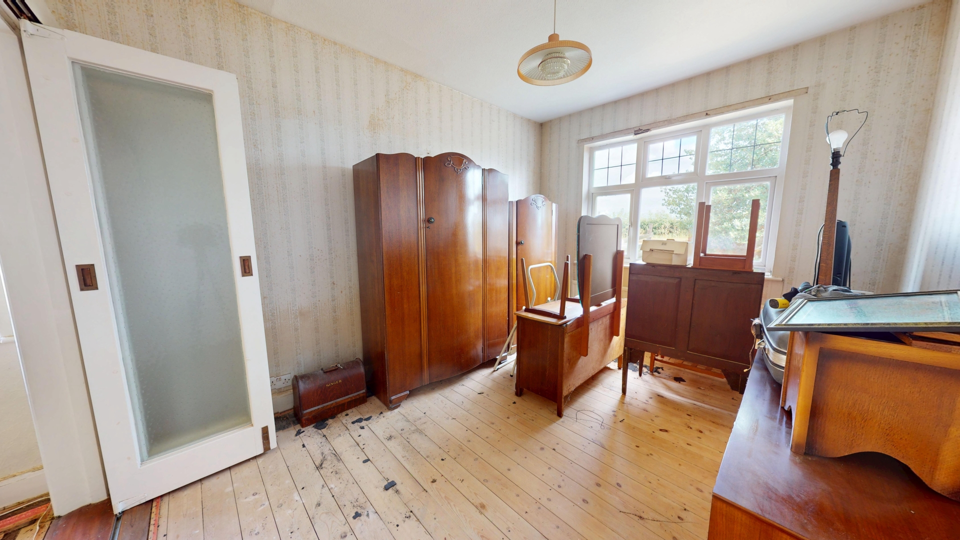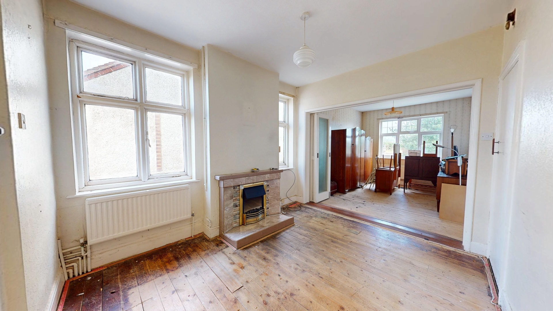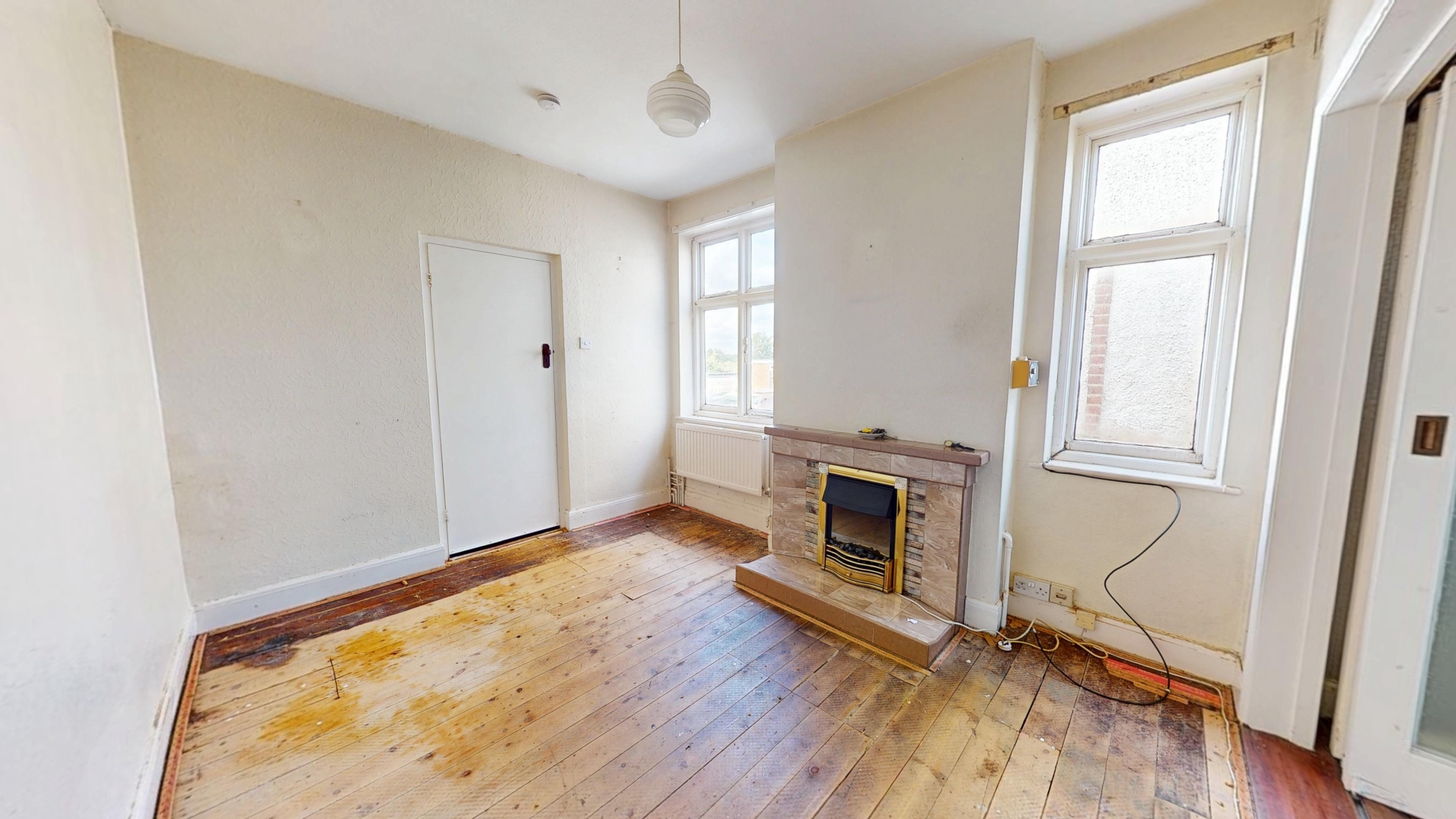 Two single glazed windows to rear elevation. Radiator. Electric fireplace. Television aerial.