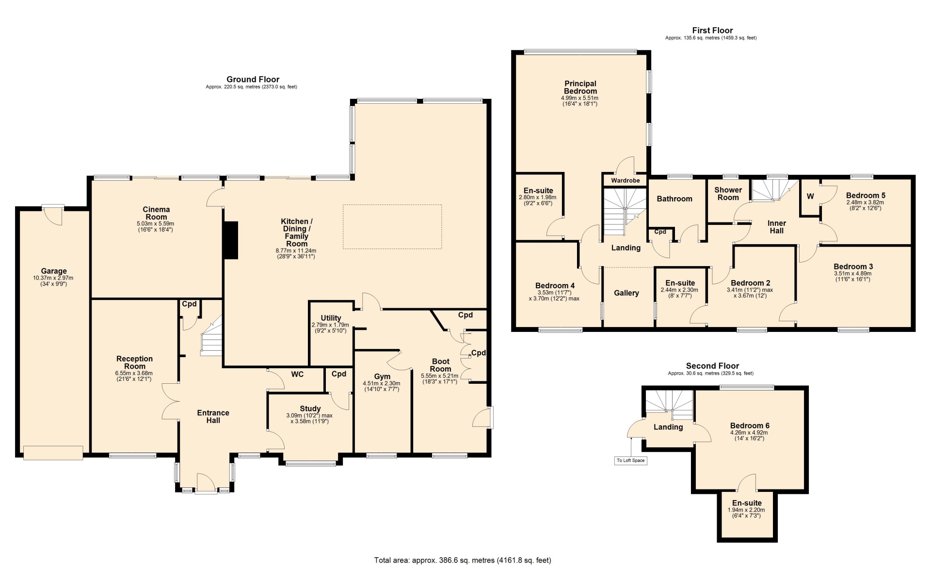 A staircase from the inner hall leads to the second floor, where you'll find the generous sixth bedroom. This room includes yet another en-suite shower room and a stunning floor to ceiling window wall offering views over the rear garden.