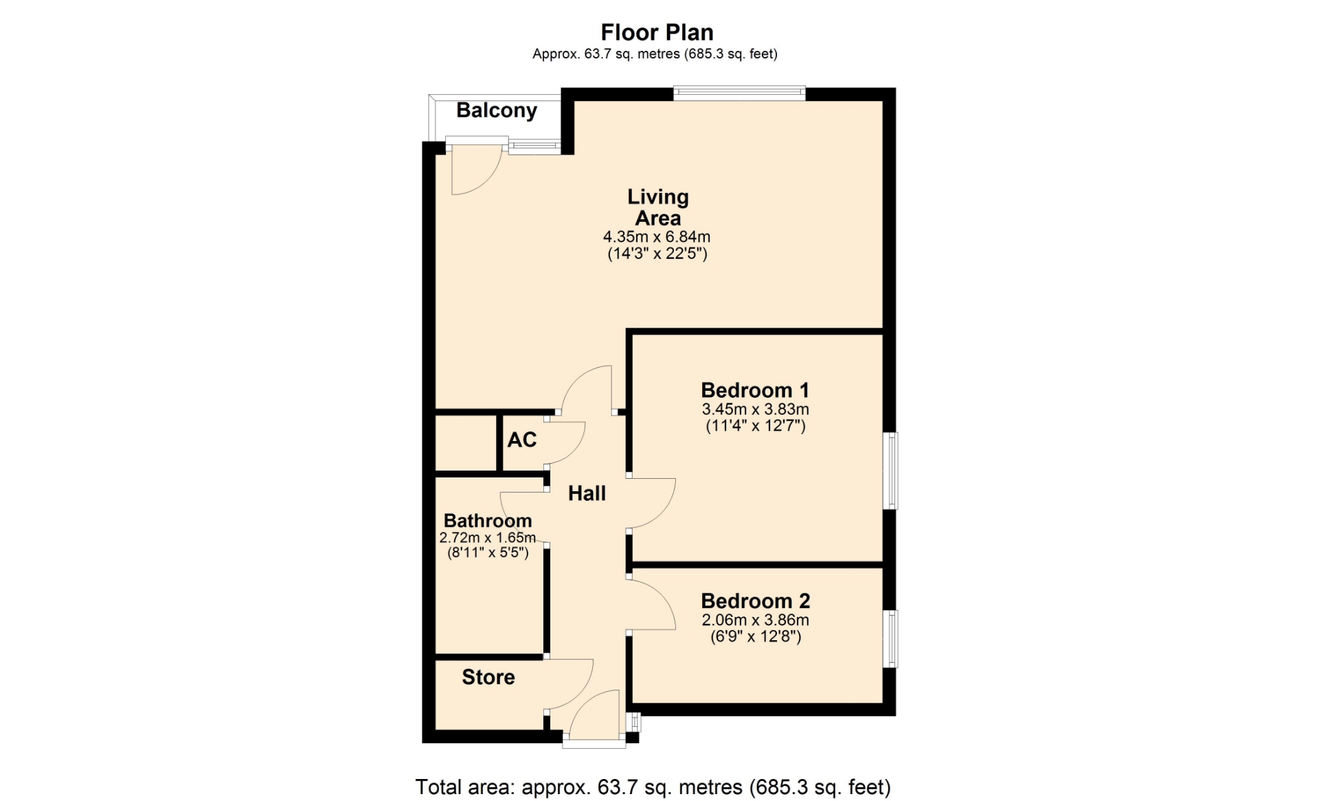 The apartment is accessed via a wooden entrance door opening into a welcoming hallway with panelled flooring, a radiator, and doors leading to both bedrooms, the bathroom, storage cupboard, and the lounge/diner. The bright lounge/diner features two double glazed windows and a further door opening onto the balcony, as well as panelled flooring and a radiator. The kitchen area is fitted with wall mounted and base units with work surfaces over, a single bowl sink with mixer tap, tiled splash backs, and space for a washing machine, cooker, and fridge. Both bedrooms benefit from double glazed windows, radiators, and matching panelled flooring. The bathroom comprises panelled bath with shower over, pedestal wash hand basin, low level WC, radiator, tiled splash back areas, and laminate flooring.